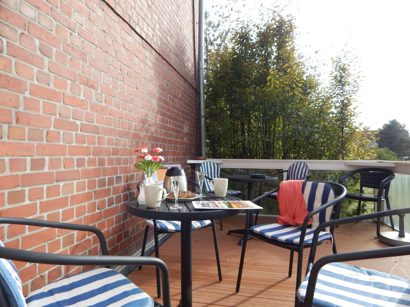 Eine großzügige Gemeinschaftsterrasse ist direkt am Haus.