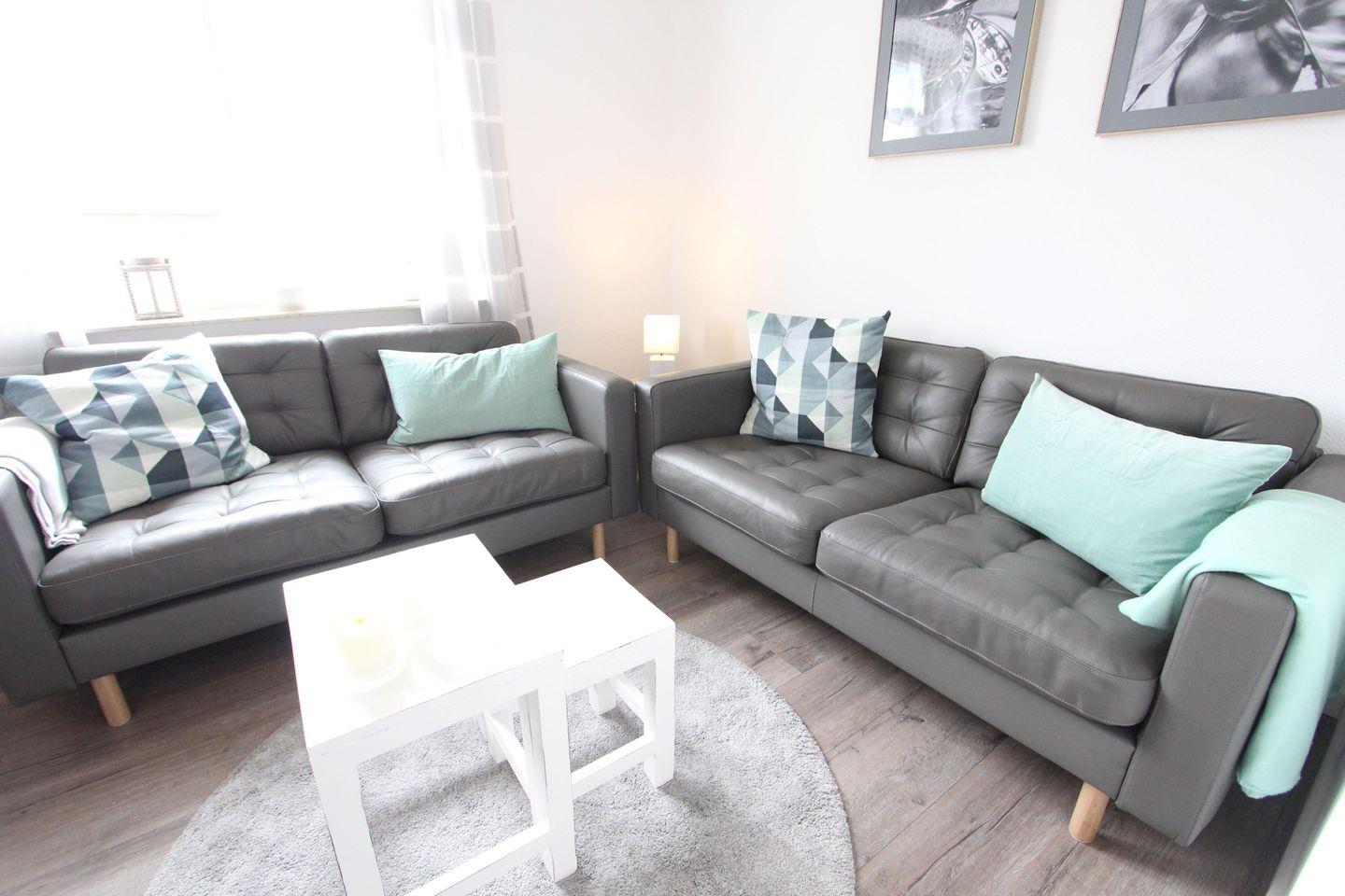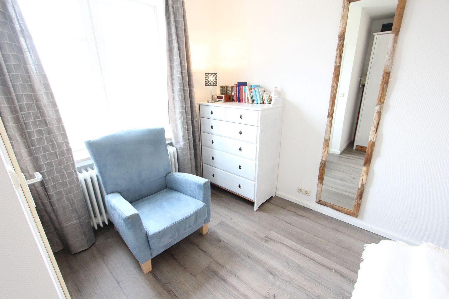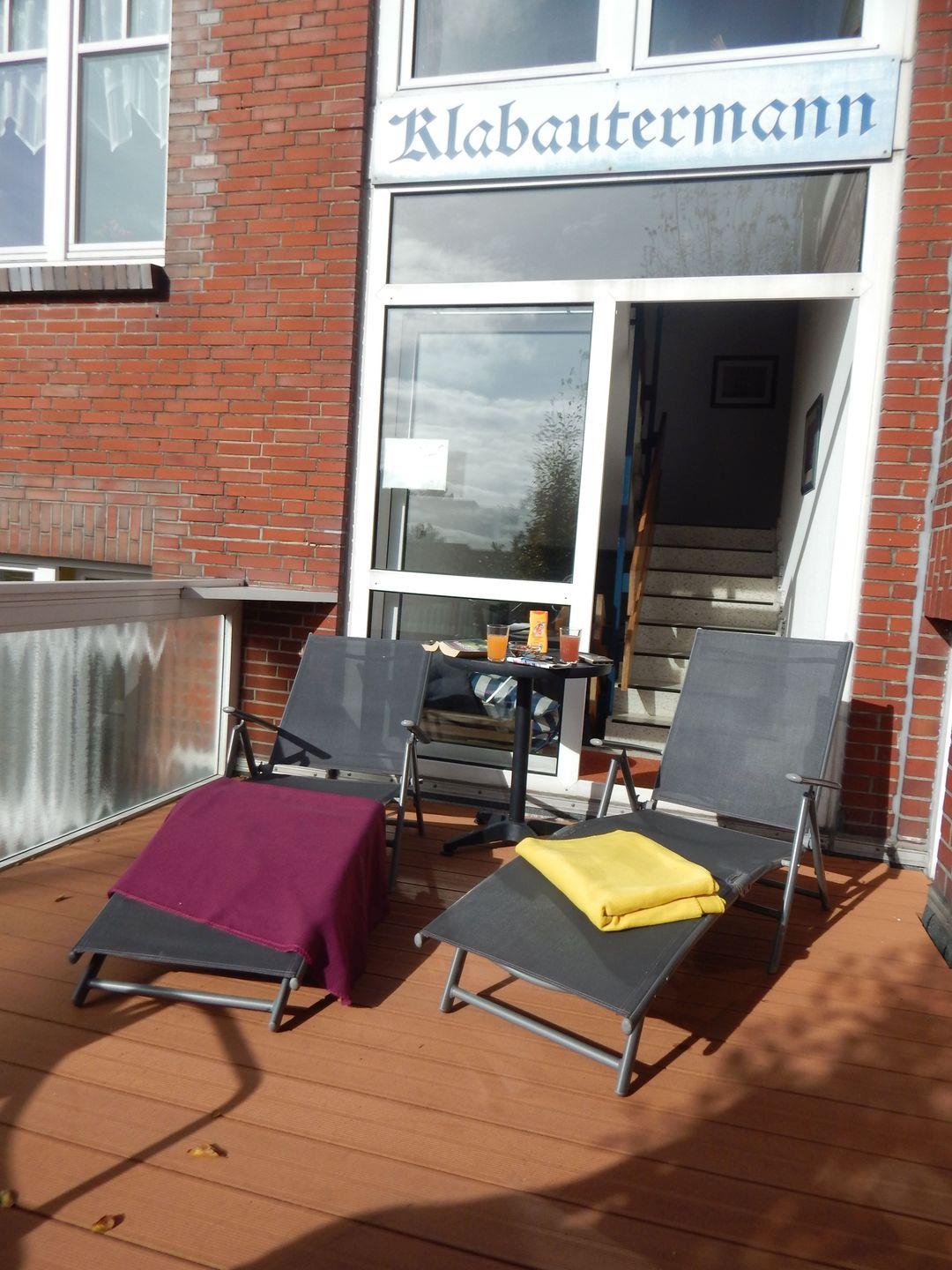 Familienfreundliche, helle und modern maritim eingerichtete Ferienwohnung in einem sehr gepflegten, maritimen Nichtraucherhaus, ca. 50 m², zwei Schlafzimmer mit je einem eigenen Bad mit Dusche & WC, Wohnzimmer, voll ausgestattete Küche. Es gibt eine sonnige Gemeinschaftsterrasse sowie eine kleine Grillecke. Im Haus ist eine Waschküche mit Münzwaschmaschine und Trockner vorhanden.