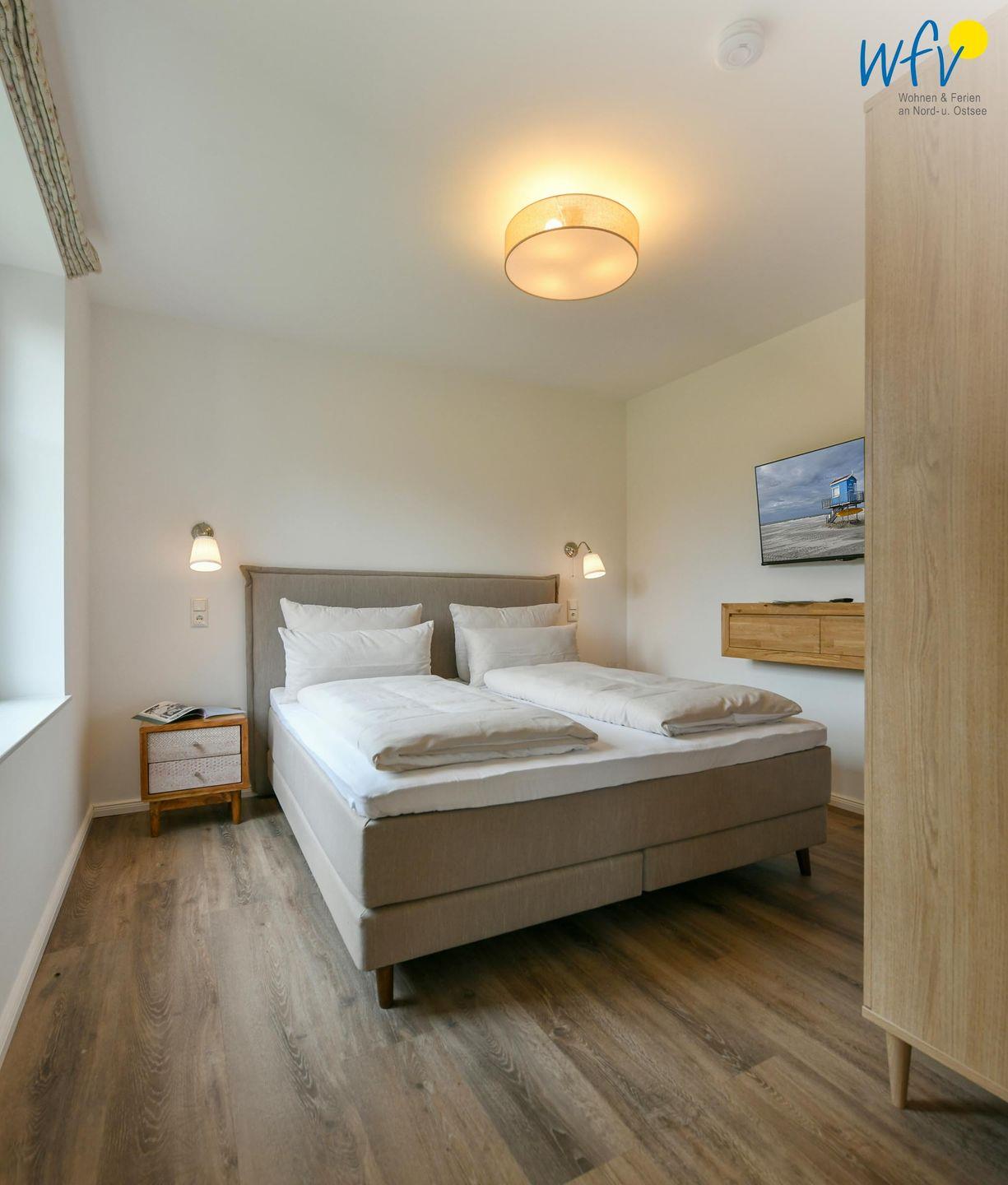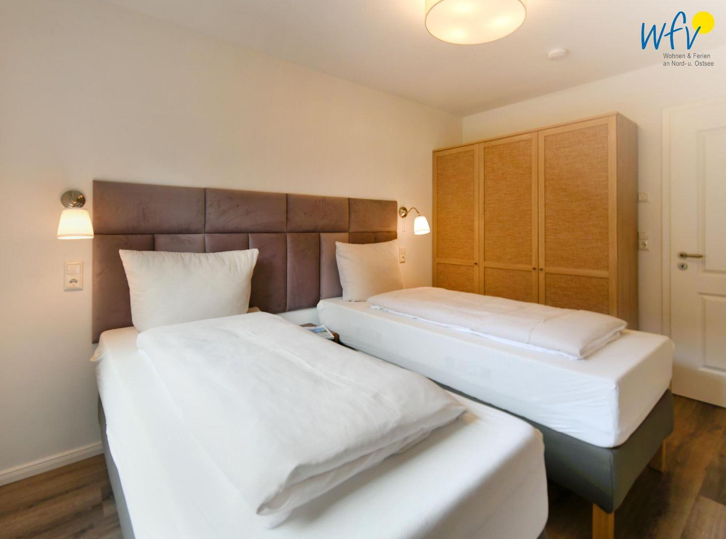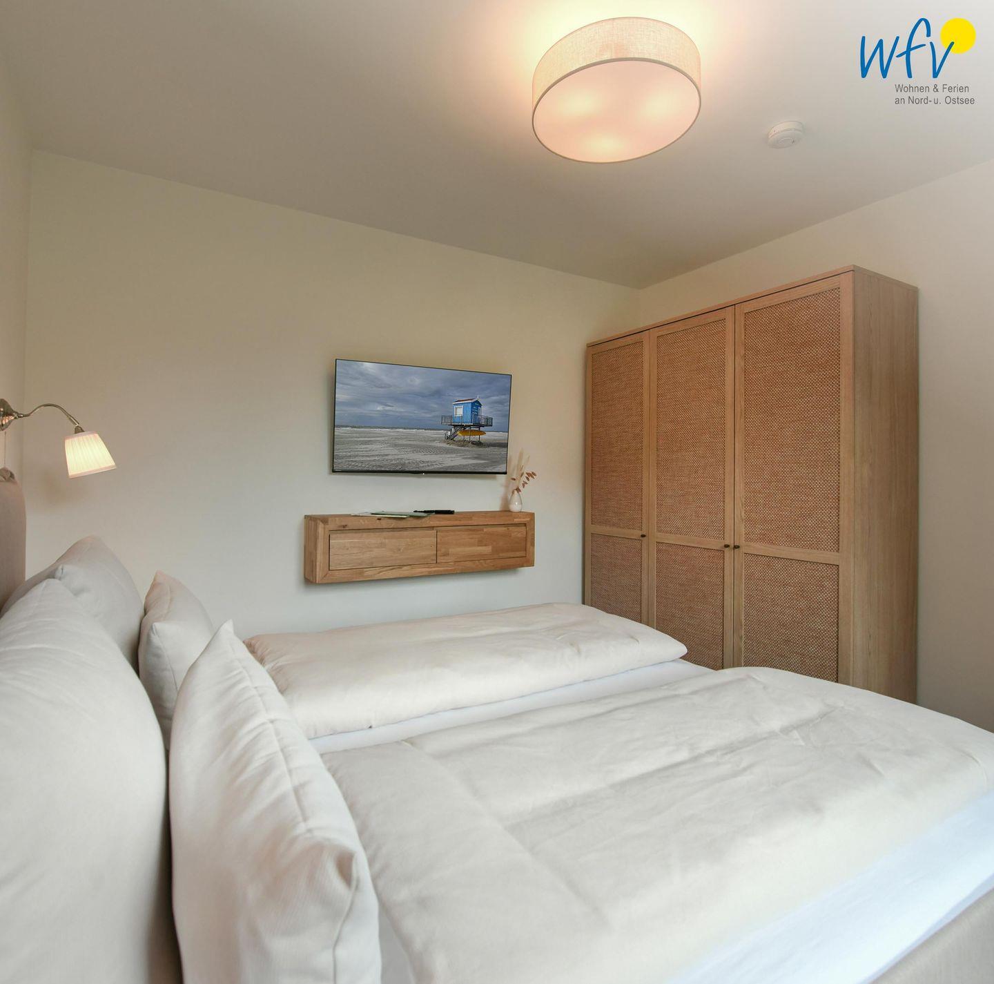Die zwei separaten Schlafzimmer bieten Ihnen sowohl Komfort, als auch Privatsphäre. Ein Schlafzimmer ist mit einem komfortablen Kingsize-Boxspringbett ausgestattet, das zweite Schlafzimmer beinhaltet zwei Einzelbetten, die bei Bedarf auch zusammengeschoben werden können.