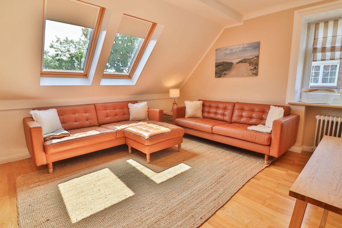 In zentraler Lage von Langeoog, nur wenige Gehminuten vom Strand, Einkaufsmöglichkeiten und der Dünenlandschaft entfernt, erwartet Sie die gemütliche und stilvoll eingerichtete Ferienwohnung „Zwischendeck“ im 1. Obergeschoss des Hus an’t Dalben. Mit 90 m² Wohnfläche, drei Schlafzimmern und Platz für bis zu sechs Personen sowie Ihren Hund, bietet sie den idealen Rückzugsort für entspannte Urlaubstage auf der Insel.