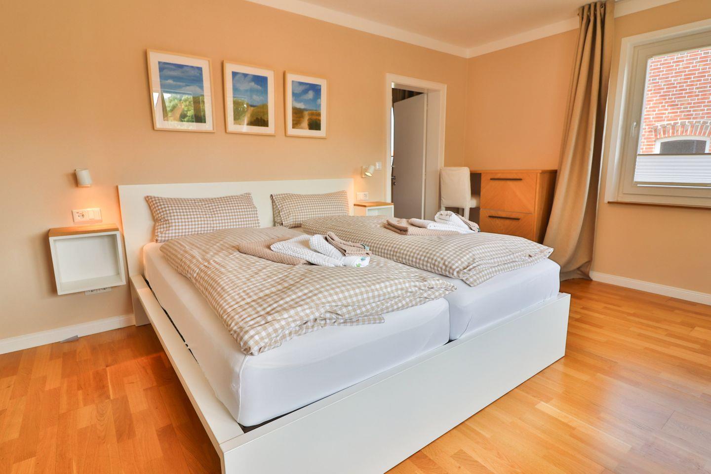 Die drei Schlafzimmer sind mit komfortablen Doppelbetten (zweimal 180x200 cm, einmal 160x200 cm), Kleiderschränken und Verdunkelungsvorhängen ausgestattet. Zwei der Zimmer verfügen zusätzlich über einen eigenen Fernseher. Eines der Schlafzimmer ist ein Durchgangszimmer zum dritten Schlafzimmer – ideal für Familien mit Kindern oder enge Freunde.