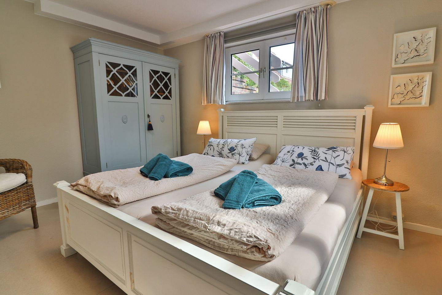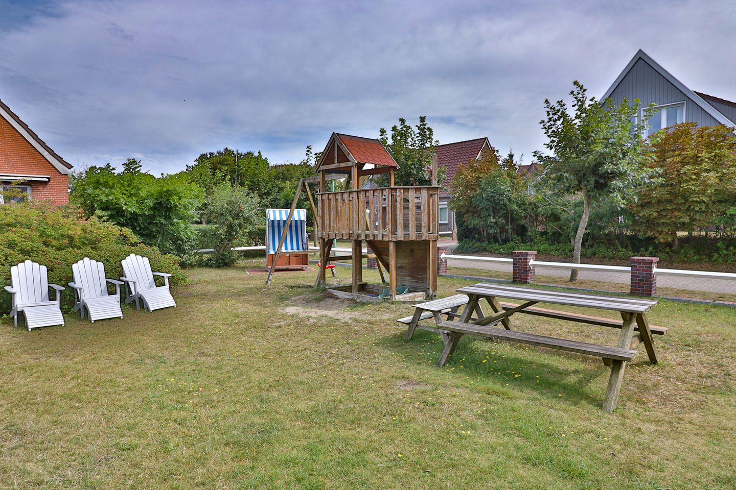 Der Außenbereich bietet Ihnen eine eigene möblierte Terrasse sowie einen gemeinschaftlich Garten mit Sonnenstühlen, Gartenmöbeln, Liegewiese und einem Strandkorb. Hier können Sie entspannen und die frische Nordseeluft genießen.