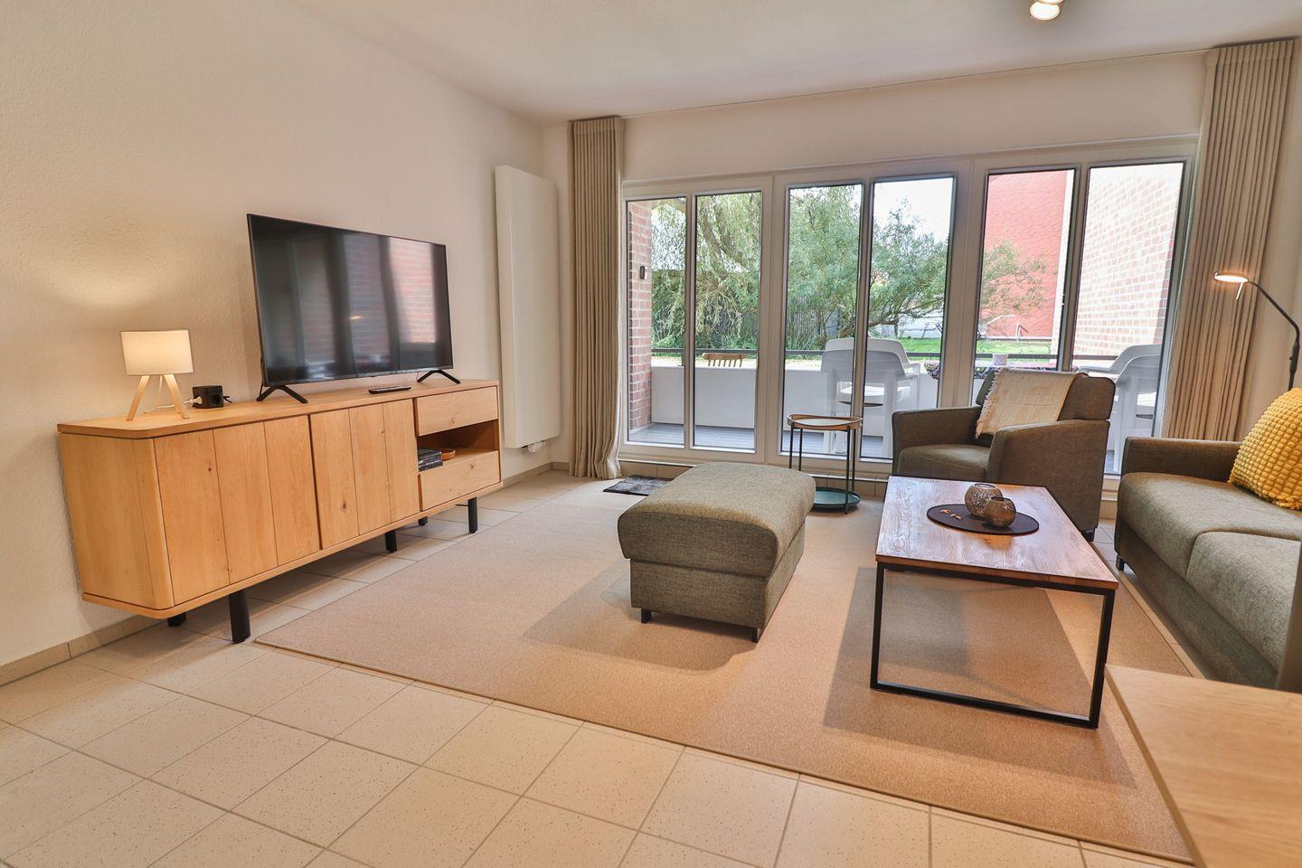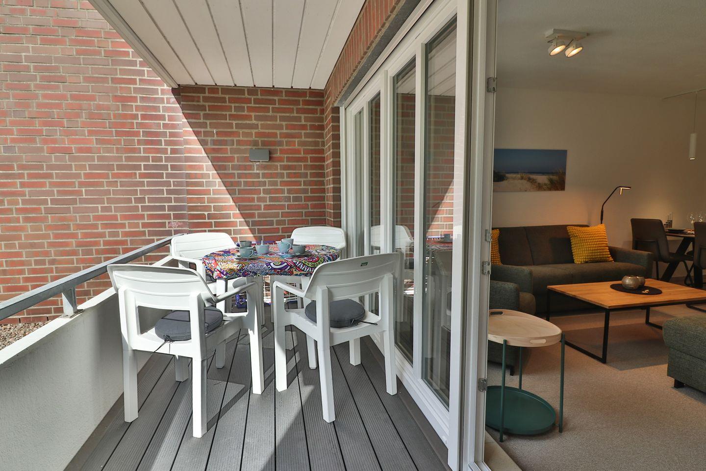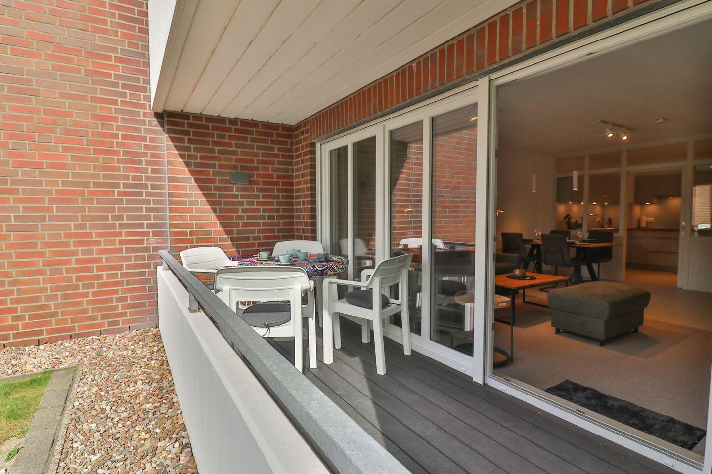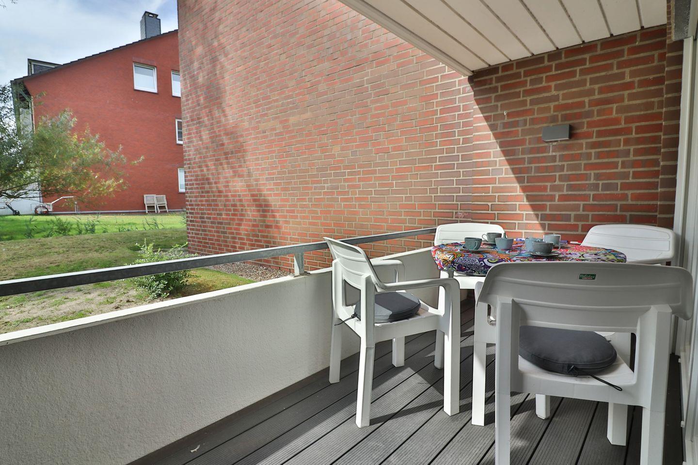 Eines der besonderen Highlights der Wohnung ist die überdachte und geschlossene Terrasse, die allen Gästen, die Wert auf Privatsphäre und Wetterschutz legen, sehr entgegenkommt. Der Gartenbereich vor der Terrasse kann ebenfalls genutzt werden und lädt zu entspannten Stunden im Freien ein.