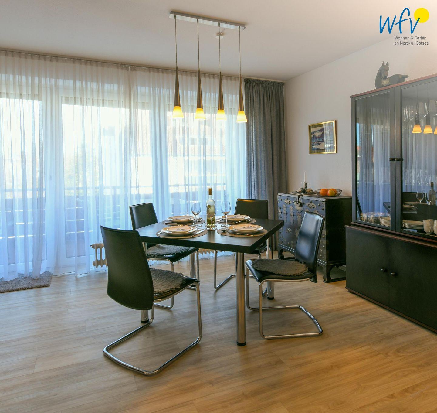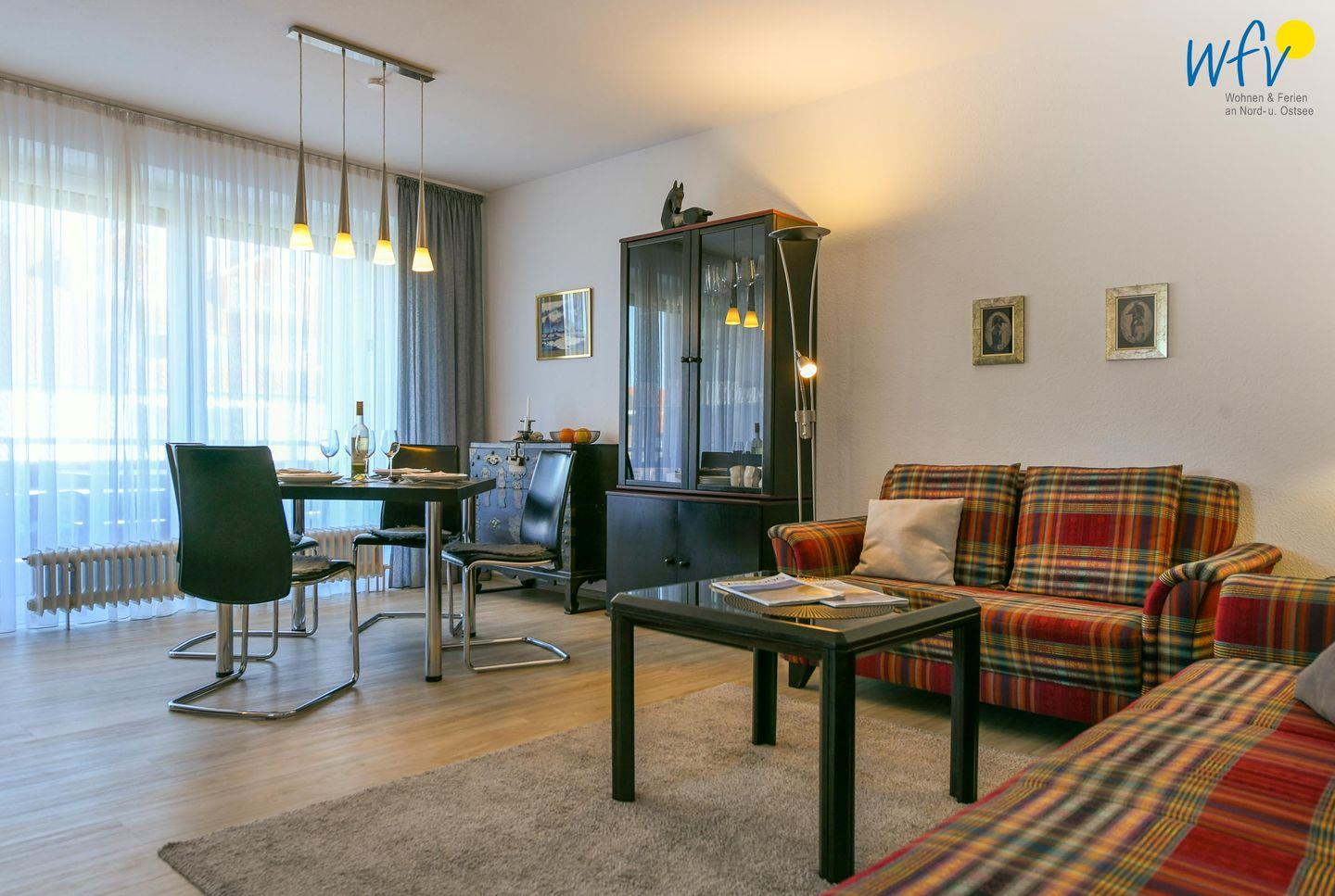 Zur Entspannung nach dem Strandtag oder der Wattwanderung lädt der helle Wohnraum mit Essplatz und Sofaecke sowie TV, DVD-Player und CD-Player ein. Oder Sie genießen auf dem Balkon erholsame Stunden - mit einem Buch und dem schönen Ausblick in die ruhige Umgebung. Ein wunderbares Urlaubsgefühl!