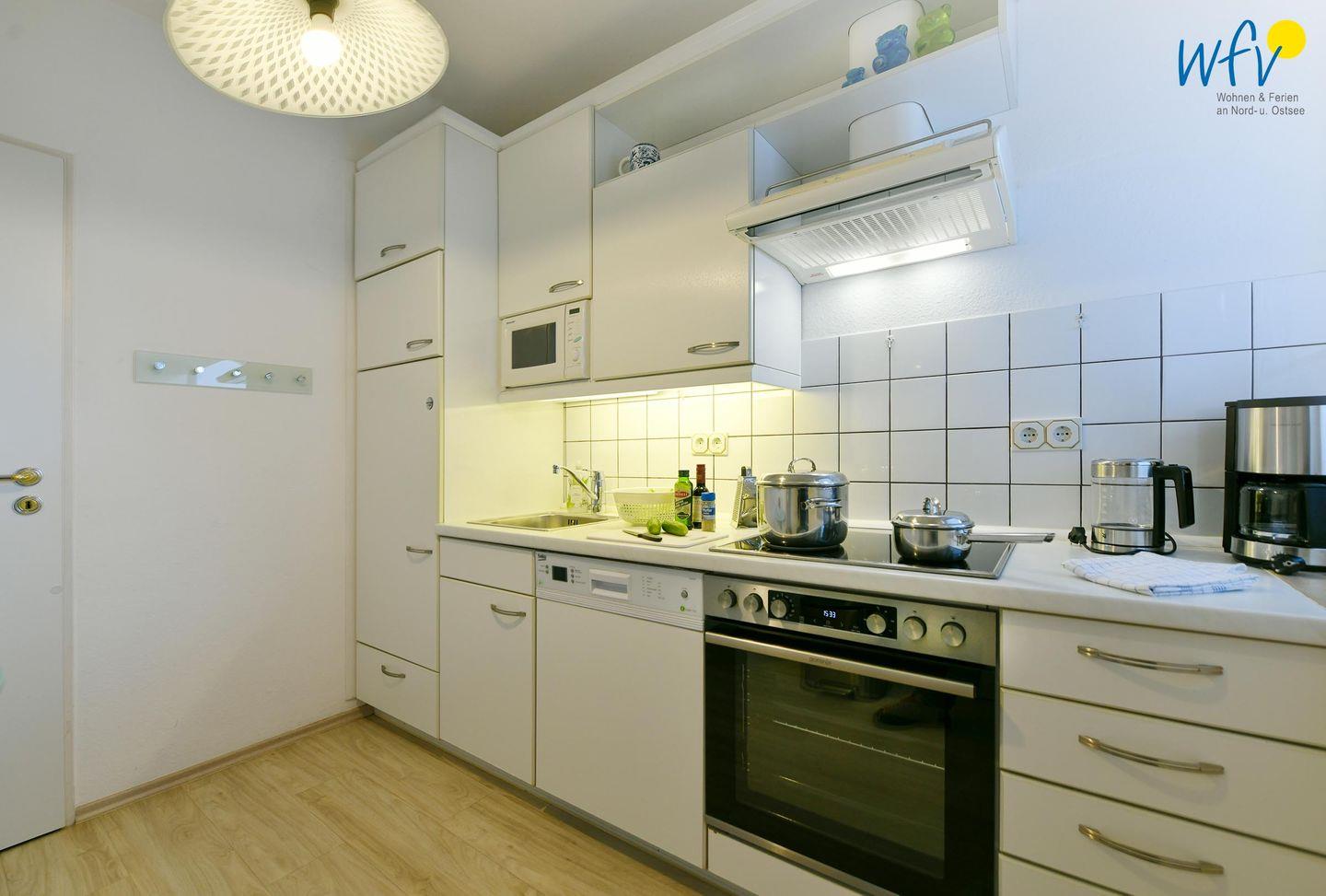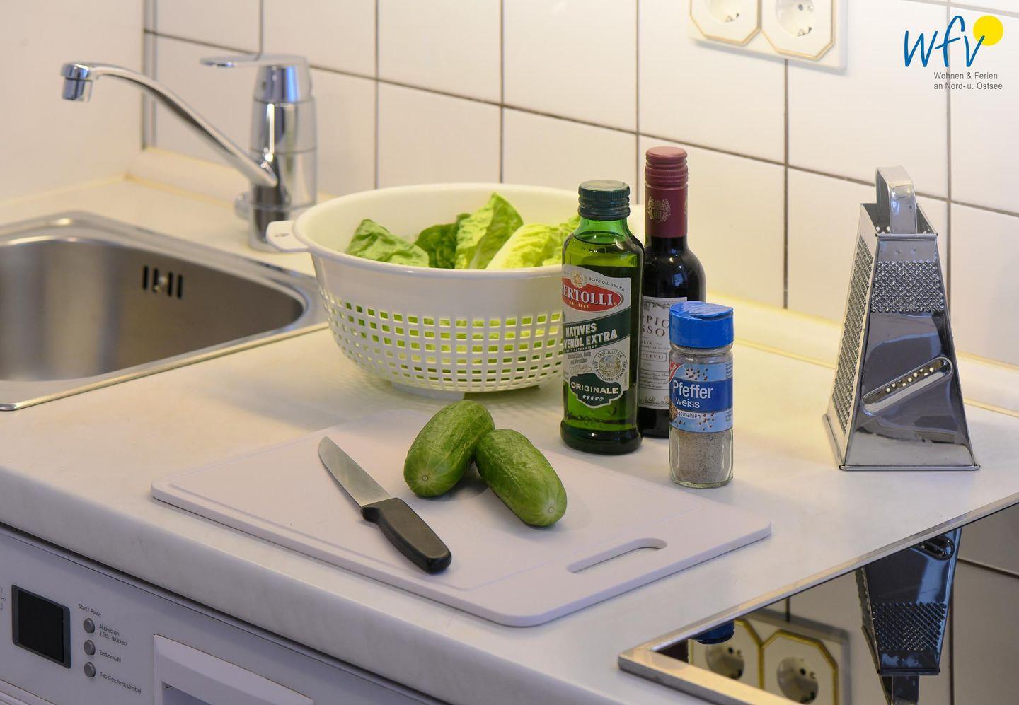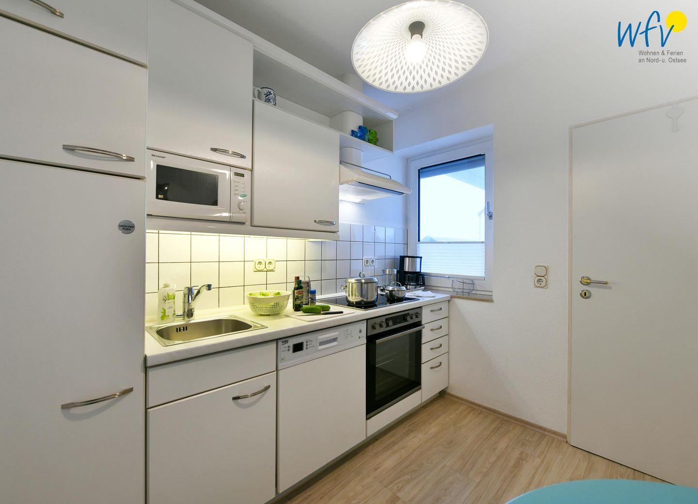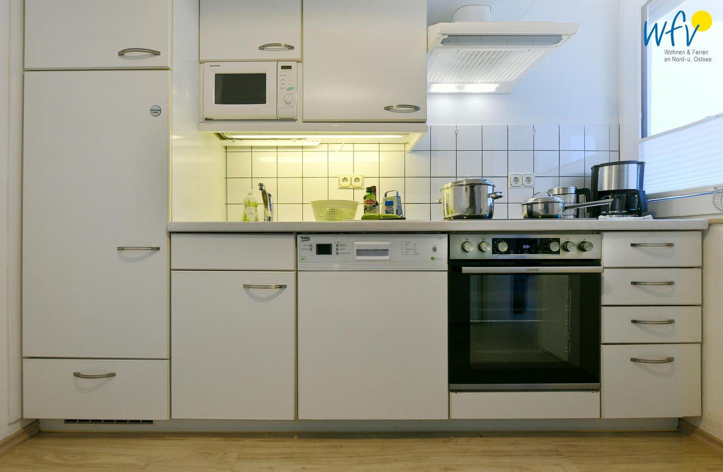 Bereits beim Ferienfrühstück beginnen Sie den Urlaubstag mit einem schönen Ausblick in die Umgebung. In Gedanken wird schon die Badetasche gepackt oder der Rucksack für den Strandspaziergang. Warme Frühstücksbrötchen, kleine Snacks für den Ausflug und leckere Mahlzeiten lassen sich in der gut ausgestatteten separaten Küche zubereiten. Ein 4-Platten-Ceranherd, ein Backofen, eine Mikrowelle und ein Geschirrspüler ermöglichen Ihnen eine bequeme Selbstverpflegung sowie gemeinsames Kochen und Klönen.