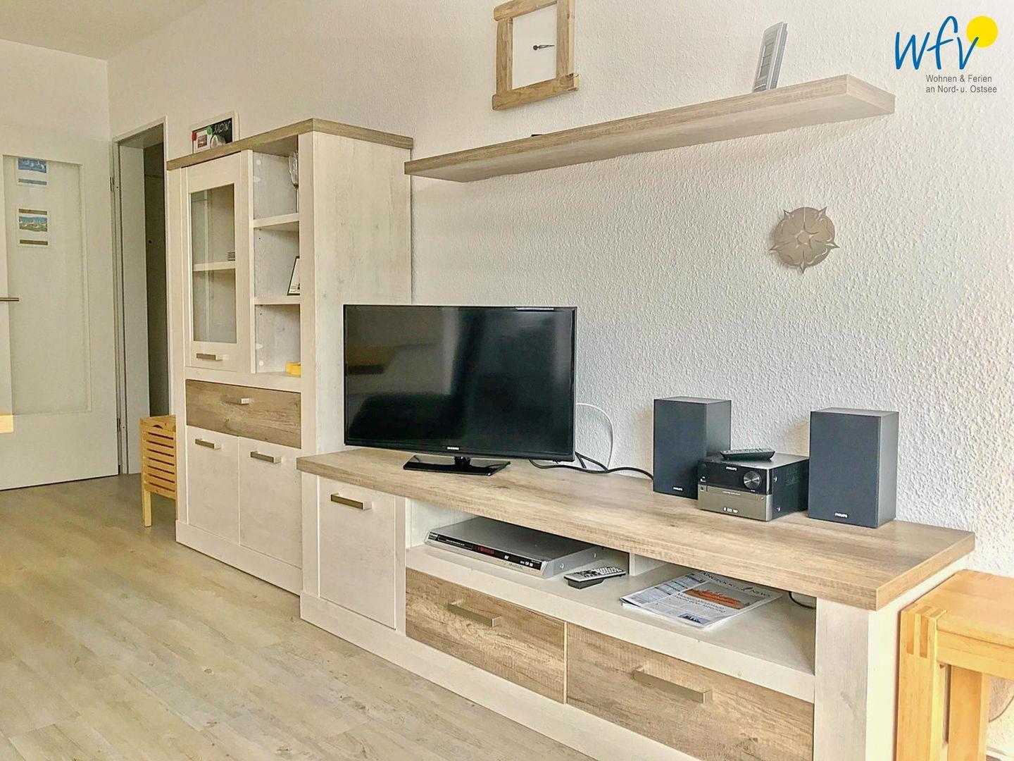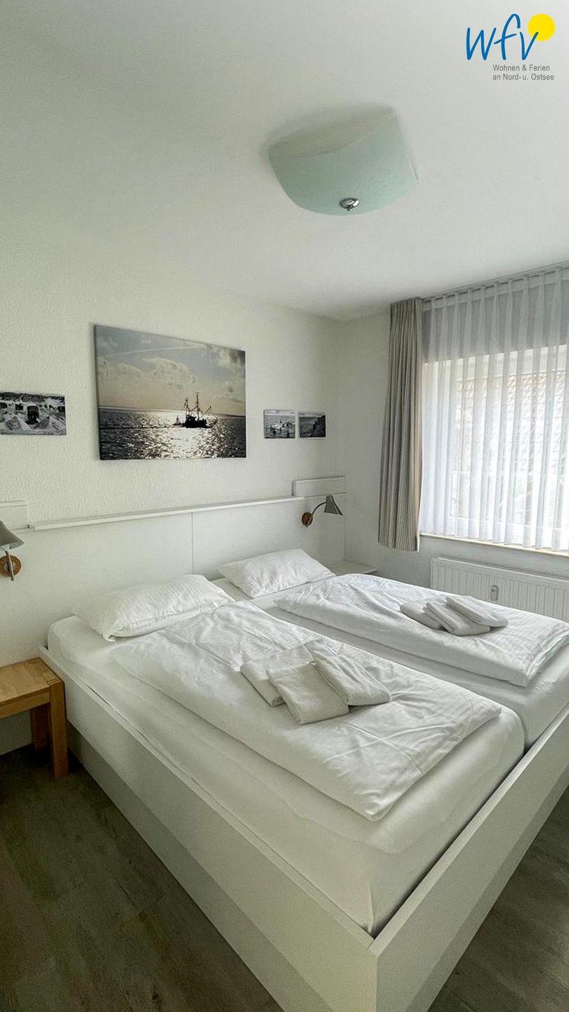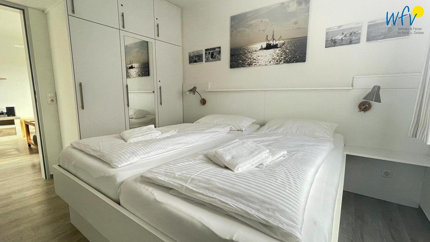 Für eine angenehme Nachtruhe ist das separate Schlafzimmer mit einem Doppelbett (180 x 200 cm) ausgestattet. Im Kleiderschrank lässt sich bequem Ihre Urlaubsgarderobe verstauen. Ein weiterer Schlafplatz besteht durch das Komfort-Schlafsofa im Wohnraum (140 x 200 cm). Im Schlafzimmer ist leider kein Stellplatz für ein Kinderbett vorhanden. Gerne können Sie mit Baby/Kleinkind anreisen und zusammen im Elternbett schlafen.