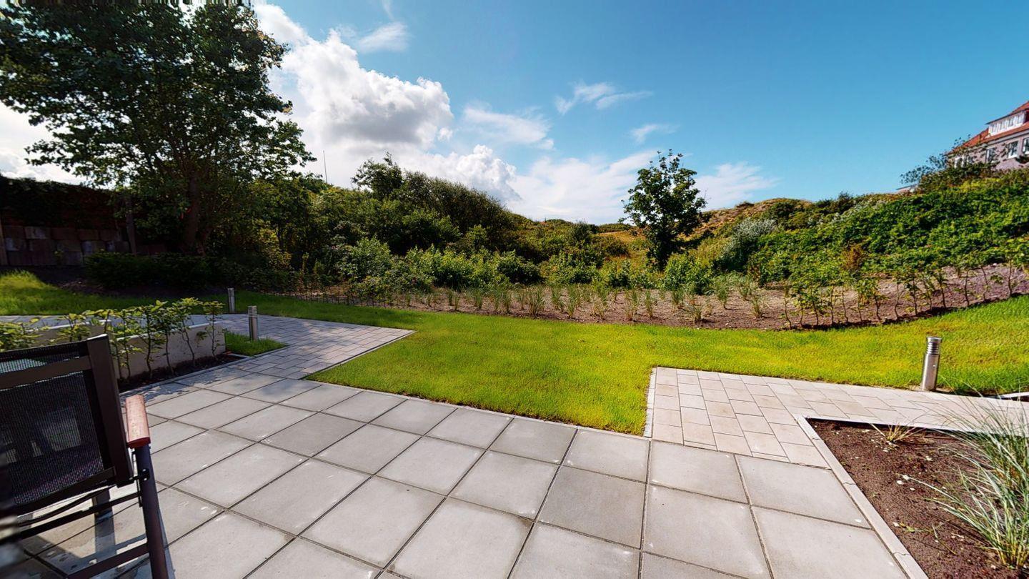 Die Wohnung ist mit Echtholzparkett und Fußbodenheizung ausgestattet, sie hat eine möblierte Terrasse mit unverbautem Dünenblick - inklusive Meeresrauschen.