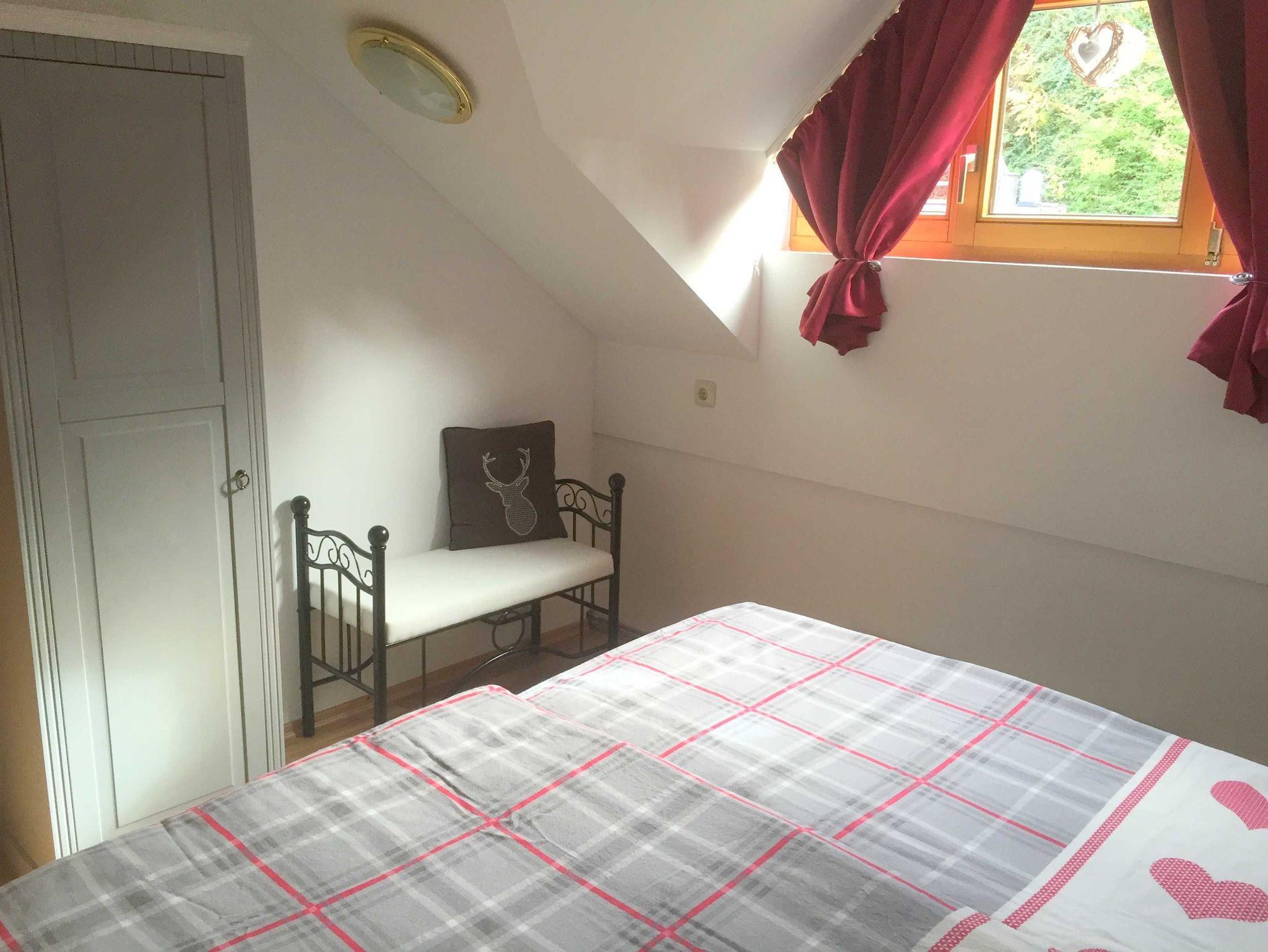 Das Schlafzimmer mit Doppelbett und 24 cm Komfort Matratzen.Im geräumigen Wohn-Essbereich steht ein bequemes Schlafsofa für 1-2 Gäste zur Verfügung.