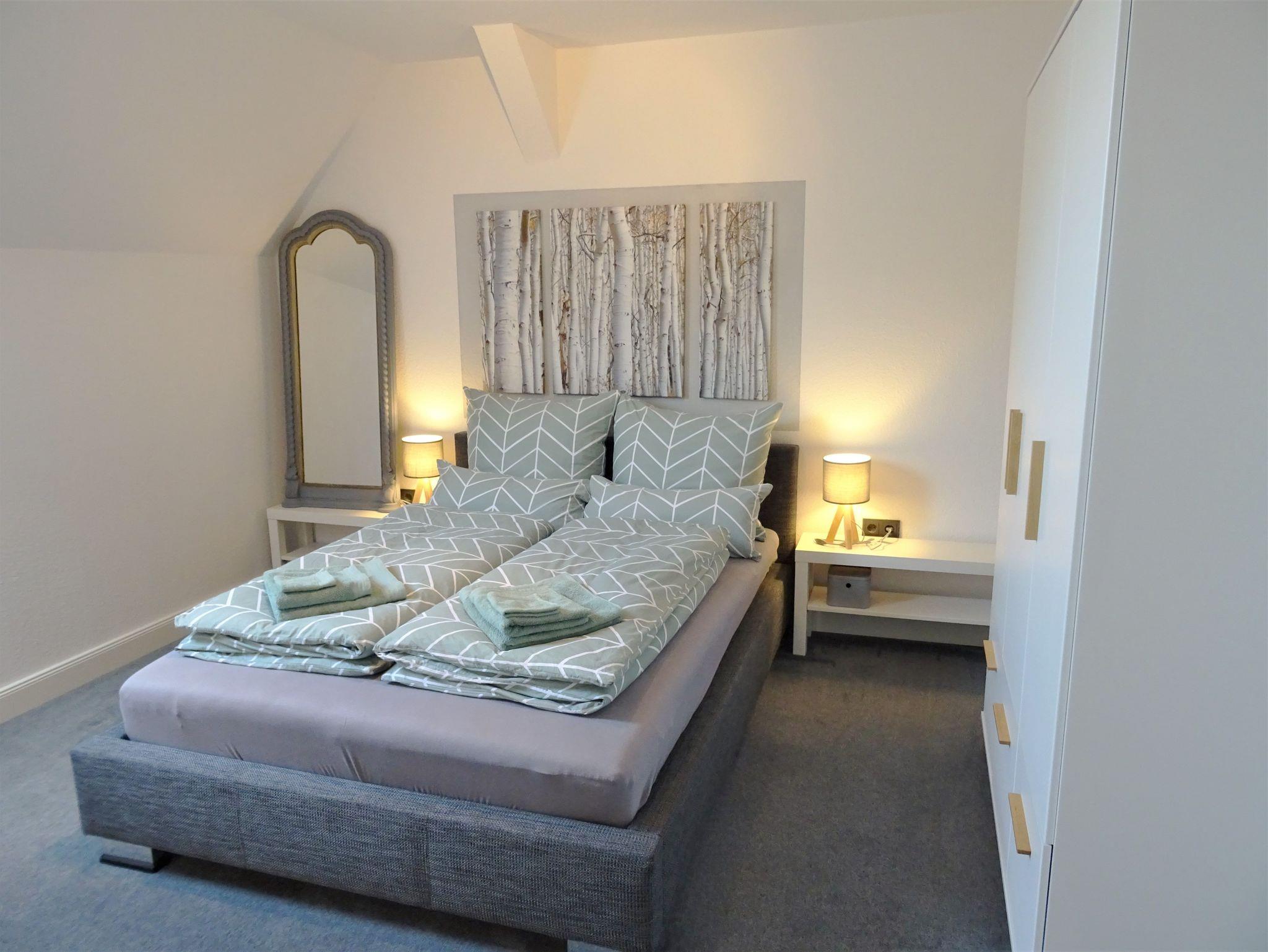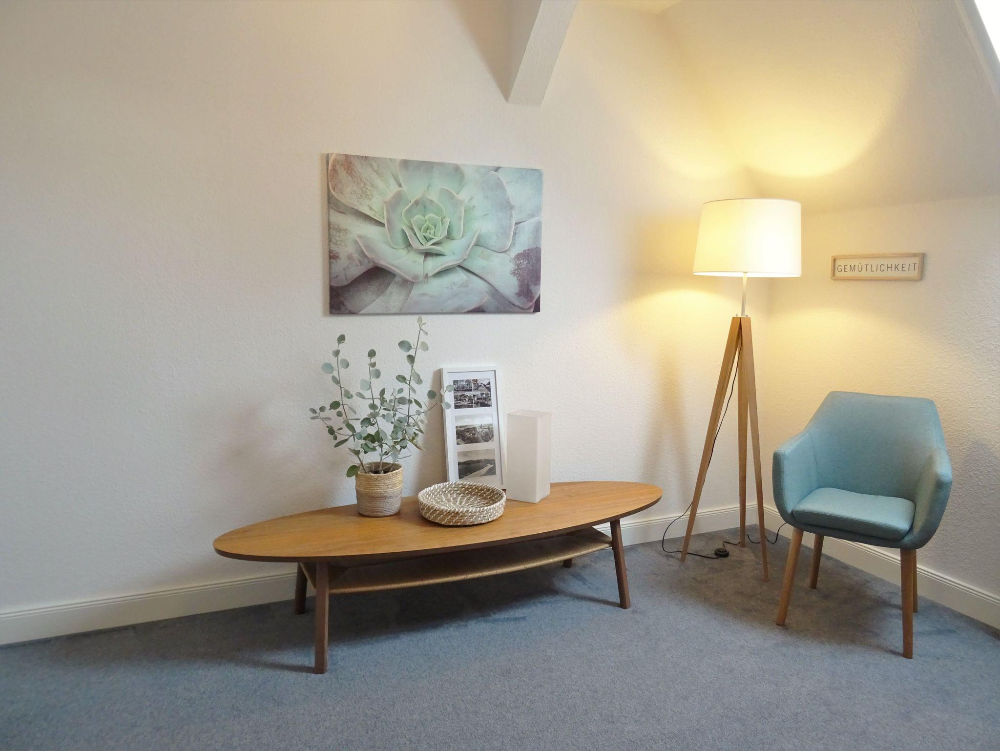 Die Ferienwohnung bietet eine tolle, moderne Einrichtung zum Wohlfühlen: in der bestens ausgestatteten Küche mitsamt kleinem Esstisch können Sie sich selber verpflegen. Das Schlafzimmer mit französischem Doppelbett und Kleiderschrank ist richtig gemütlich und das Wohnzimmer mit großer Wohnlandschaft ist perfekt geeignet zum Lesen, Fernsehen oder für gemütliche Gespräche.