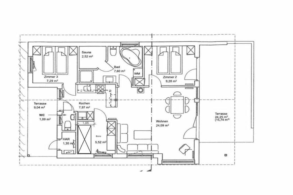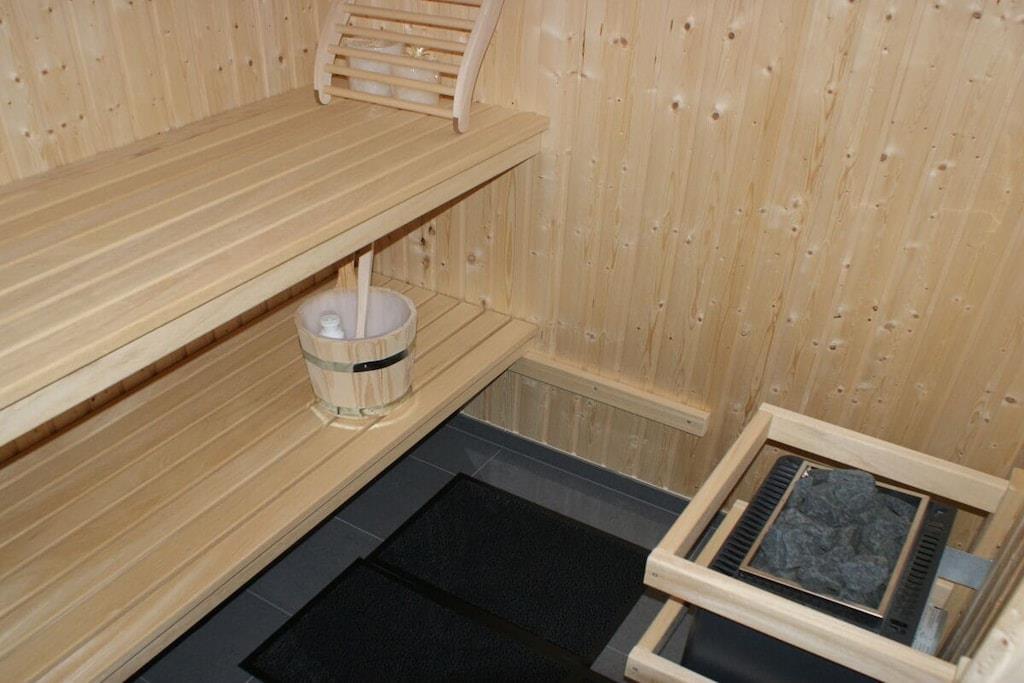Vacuum Cleaner, Living room(Game Console, Games, TV, stove, DVD player, Blu-ray player, radio, CD player, insect screens), Kitchen(Egg Cooker, Mixer, Tea Towels, Kitchenette, dining table, stove, hob, electric kettle, toaster, cooker, coffee machine, oven, grill, microwave, dishwasher, fridge, freezer, insect screens), bedroom(Bed Linen, Desk, Wardrobe, single bed, double bed, TV, cot, high chair, insect screens), bedroom(Bed Linen, Desk, Wardrobe, single bed, double bed, TV, cot, high chair, insect screens), Gallery bedroom, bathroom(Mirror, toilet, sauna, bath tub, hot tub, shower, washbasin, washing machine, heating, hairdryer, insect screens), guest toilet(Mirror, toilet, washbasin), relaxation area(sauna, hot tub), conservatory(Armchair), Internet access, tumble dryer, washing machine, terrace(Beach, grill, garden furniture, sun loungers), garden(Beach, Lawn, garden furniture, sun loungers, Garden shed), parking, iron, Laundry Package for a fee