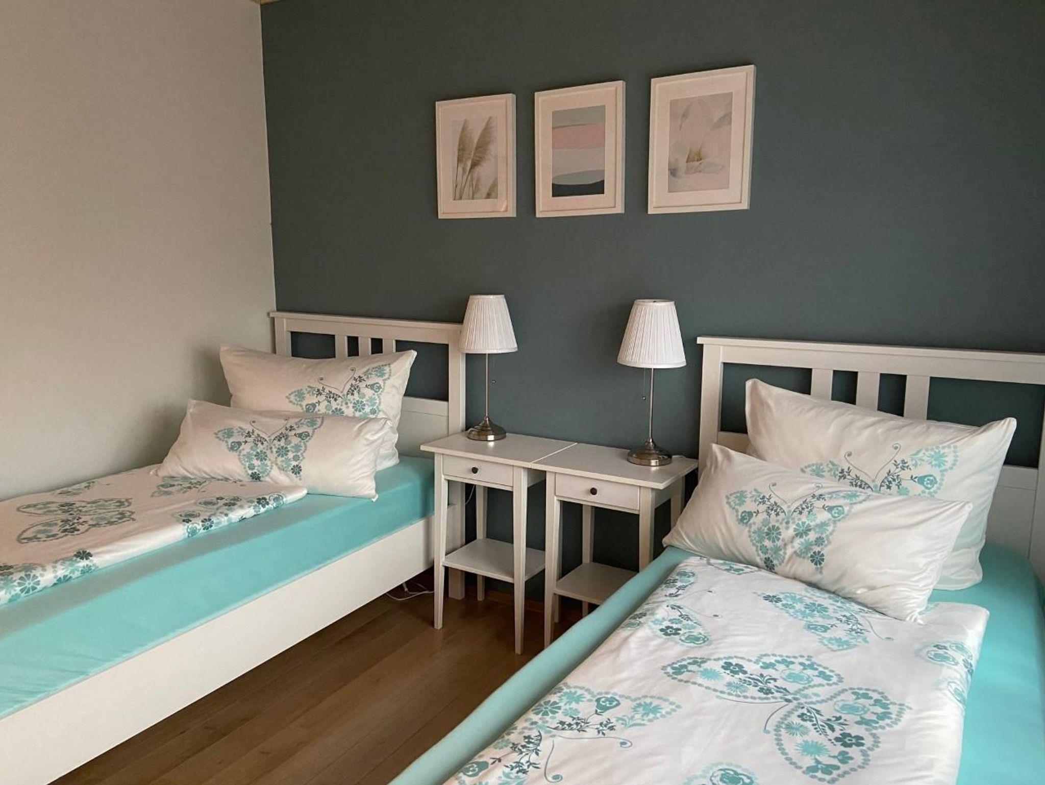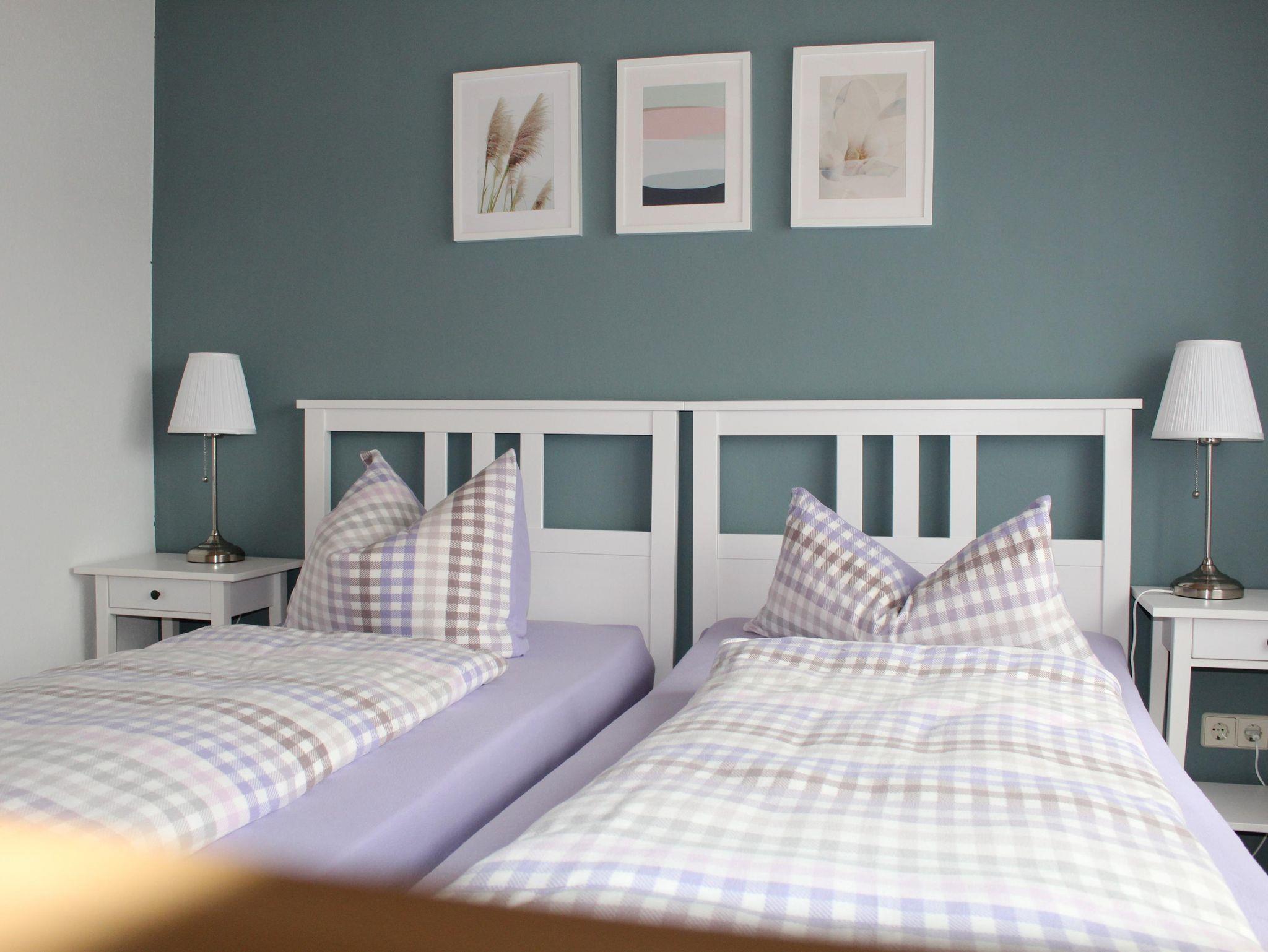 Unsere Ferienwohnung mit separatem Eingang bietet auf 40 Quadratmetern Platz für bis zu 2 Personen. Sie liegt zum Garten hin sehr ruhig gelegen. Der Wohnbereich verfügt über Sofa und TV sowie eine Küche. Die Küche ist mit Kühlschrank, Gefrierfach, Herd, Geschirrspülmaschine, Mikrowelle, Kaffeemaschine, Toaster und Wasserkocher voll ausgestattet. Das Schlafzimmer verfügt über zwei Einzelbetten, welche auf Wunsch auch zu einem Doppelbett zusammengestellt werden können. Das Tageslichtbad ist mit Dusche, Waschbecken, WC und Fön ausgestattet.