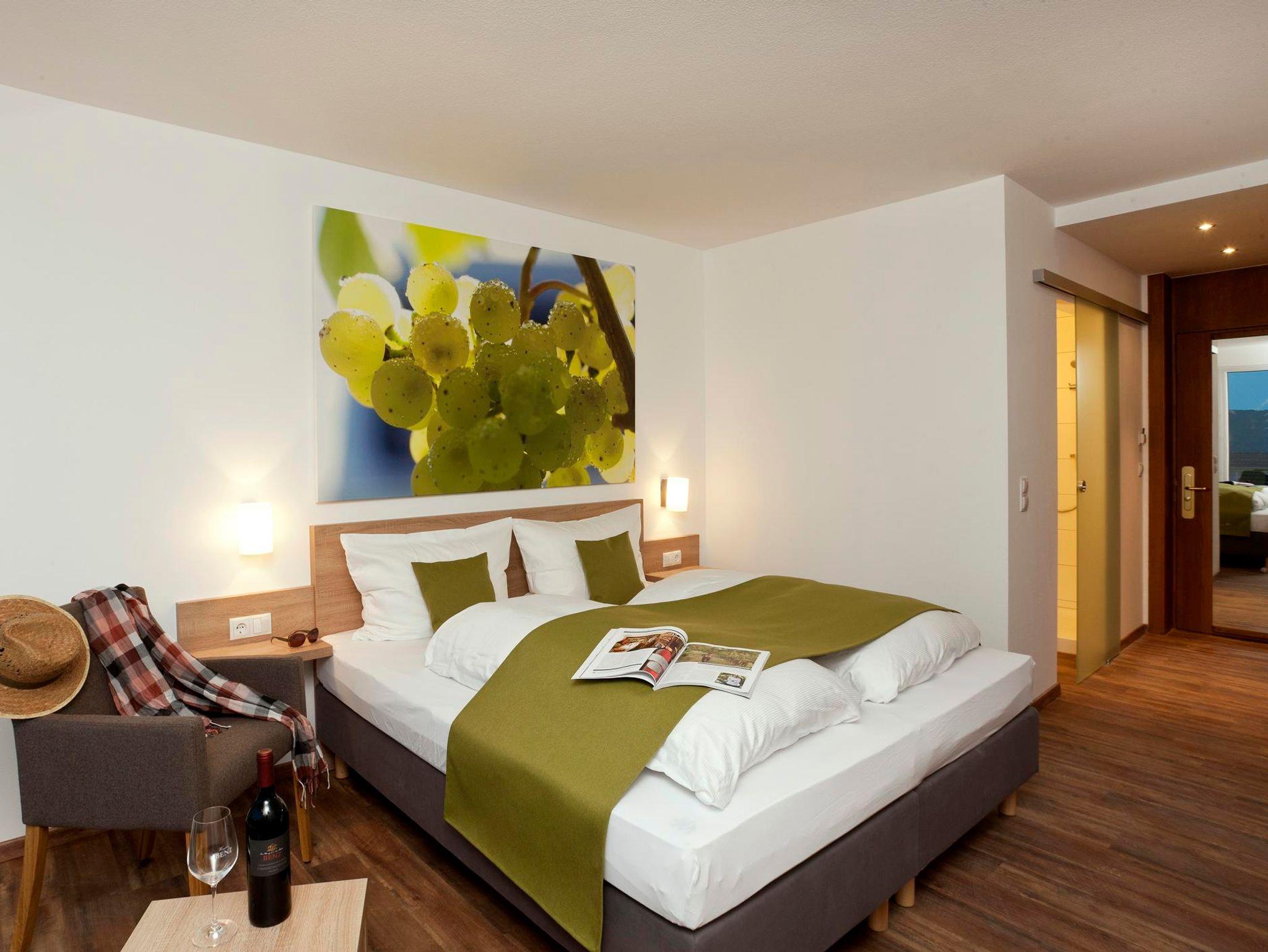 Von Weinmachern erbaut und gestaltet. Ein familiengeführtes Weinhotel direkt in den Weinbergen gelegen. Alle Appartements bieten Ihnen einen herrlichen Ausblick auf die direkt angrenzenden Weinberge. Begegnen Sie dem Wein während Sie unser Gast sind und genießen Sie die idyllische Ruhe dabei. Es ist ein Nichtraucher-Haus.