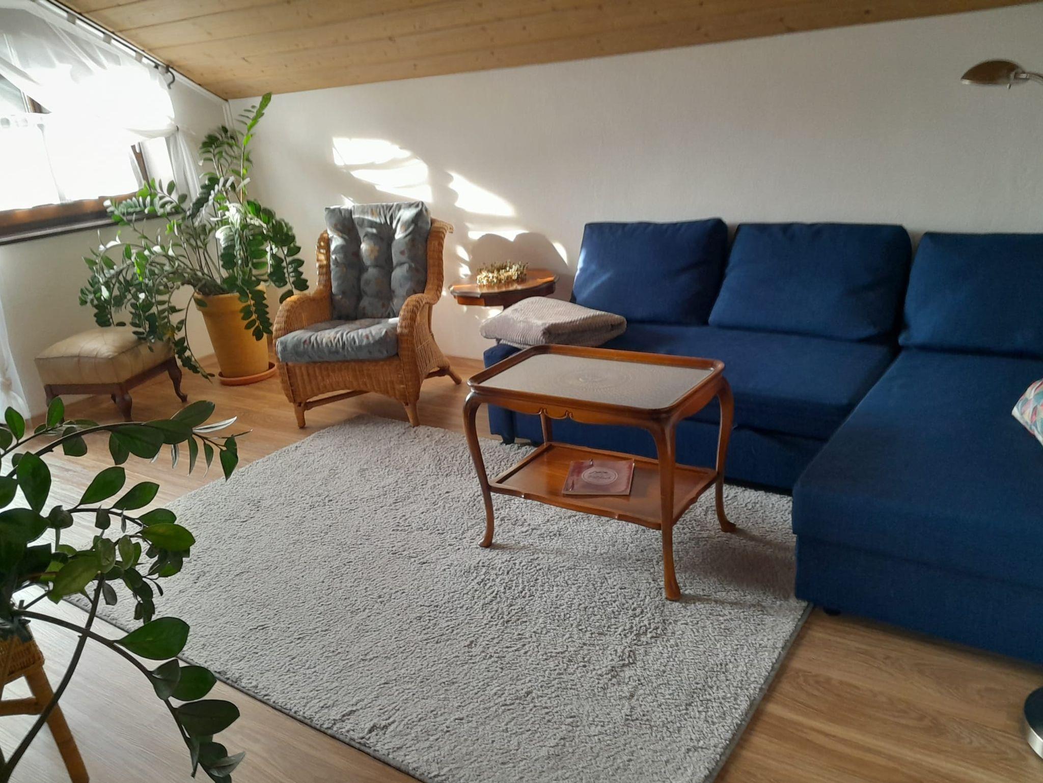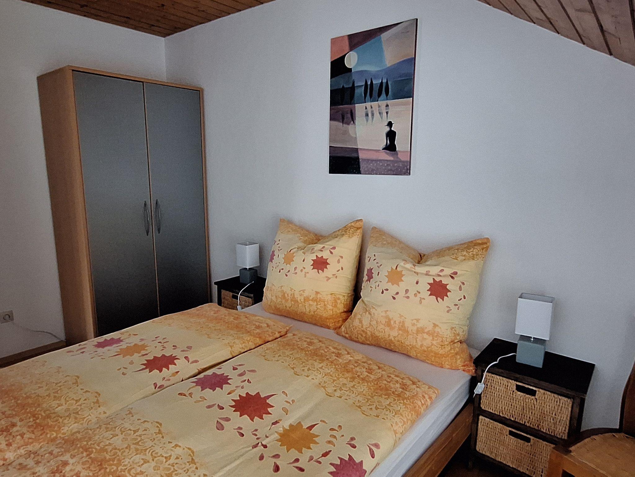 Sonnige, gemütliche 2 Zimmer Wohnung in ruhiger Lage mit Blick auf die Berge. Kostenloses WLAN vorhanden. Die Wohnung befindet sich im 1. Stock mit 2 Balkonen (Nord- und Südbalkon). Die Balkone sind mit Tisch und Stühlen ausgestattet. Die Küche mit allem Zubehör inkl. Kühlschrank, Mikrowelle, Kaffeemaschine und lädt zum Kochen ein. Das Wohnzimmer ist groß und hell mit ausziehbarem Schlafsofa. Das Schlafzimmer ausgestattet mit einem Doppelbett, 2 Nachtkästchen und einem Kleiderschrank bietet Platz für Ihre Kleidung. Betten sind bezogen, zusätzliche Decken und Kissen vorhanden. Das Badezimmer mit WC, Badewanne, Dusche , Handtücher, Fön und Toilettenartikel.