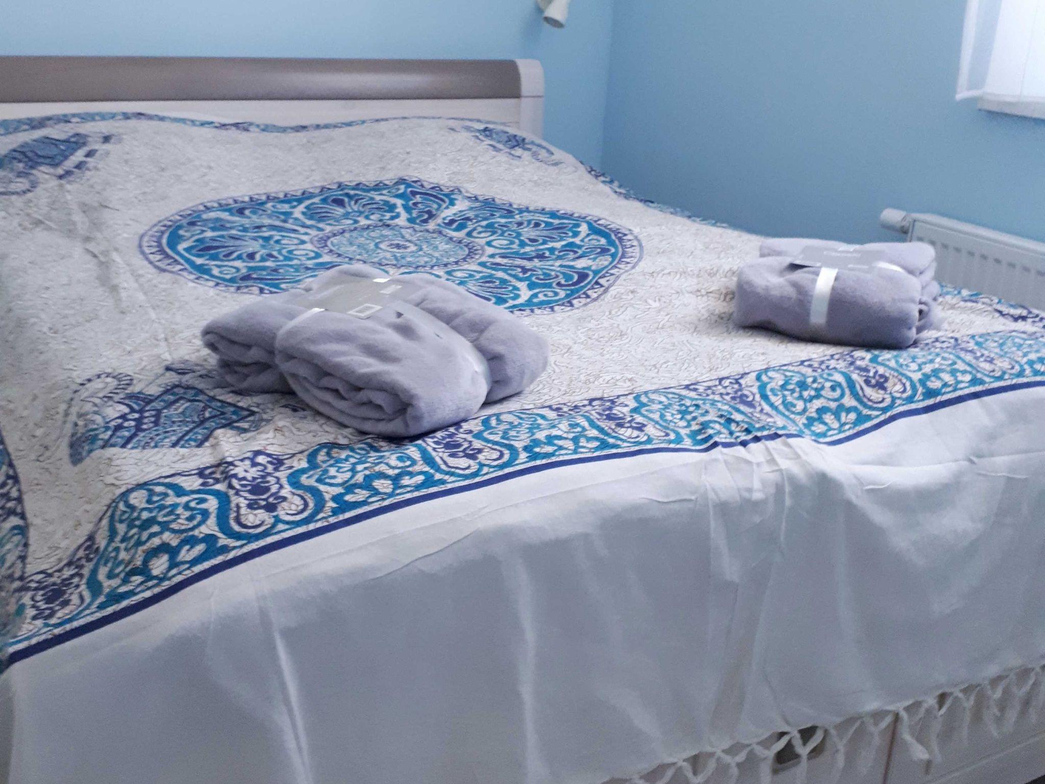 Die fahrradfreundliche Ferienwohnung Charlotte ist eine helle Ferienwohnung mit einem Schlafzimmer mit Doppelbett (und einem Kinderbett), einem kombinierten Wohn-Schlafraum mit Schlafsofa sowie einer Küche. Das Badezimmer ist mit Wanne ausgestattet.