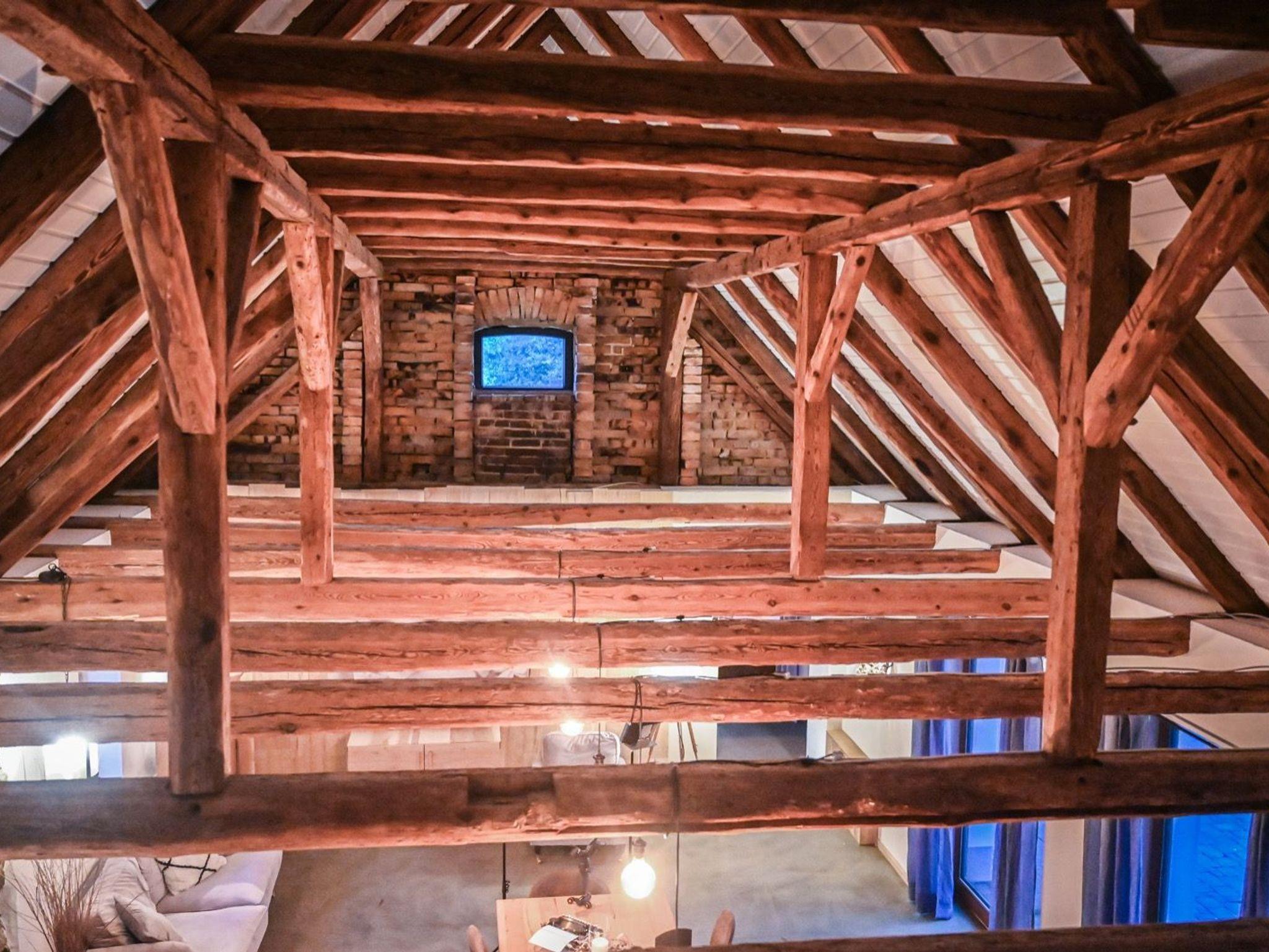 In einem Flügel des Dreiseitenhofes befinden sich ein großer Raum mit offenem Dachstuhl, eine voll ausgestattete Küche, ein lichtdurchfluteter Wintergarten und offene Galerie. Hier kann man wunderbar gemeinsame Zeit verbringen.