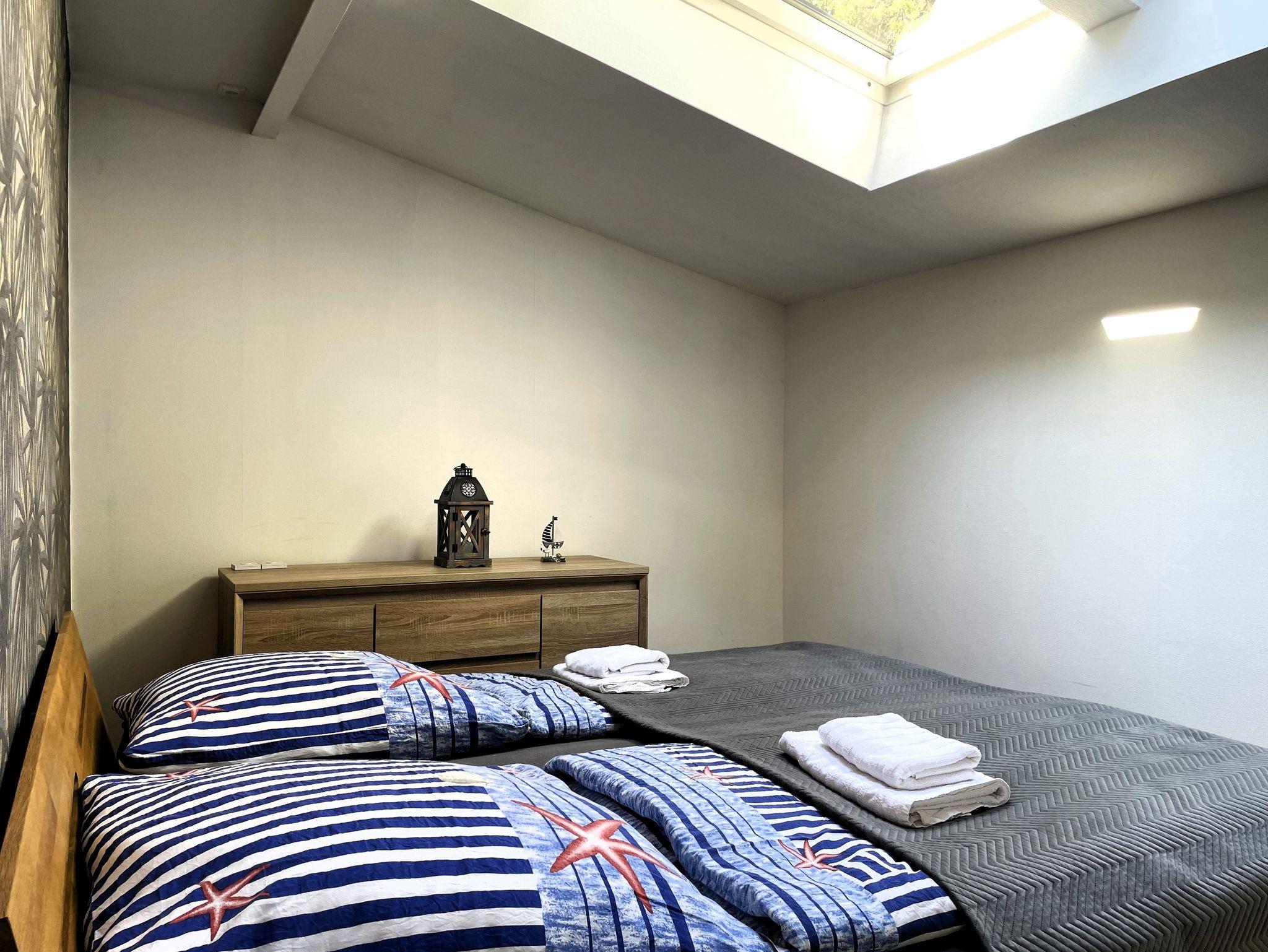 Eine Wendeltreppe führt ins Dachgeschoss, wo zwei getrennt stehende Betten sowie ein zusätzlicher Bereich auf Sie warten ob als Kinderzimmer, kleine Spielecke oder ruhiger Platz zum Lesen und Ausruhen.