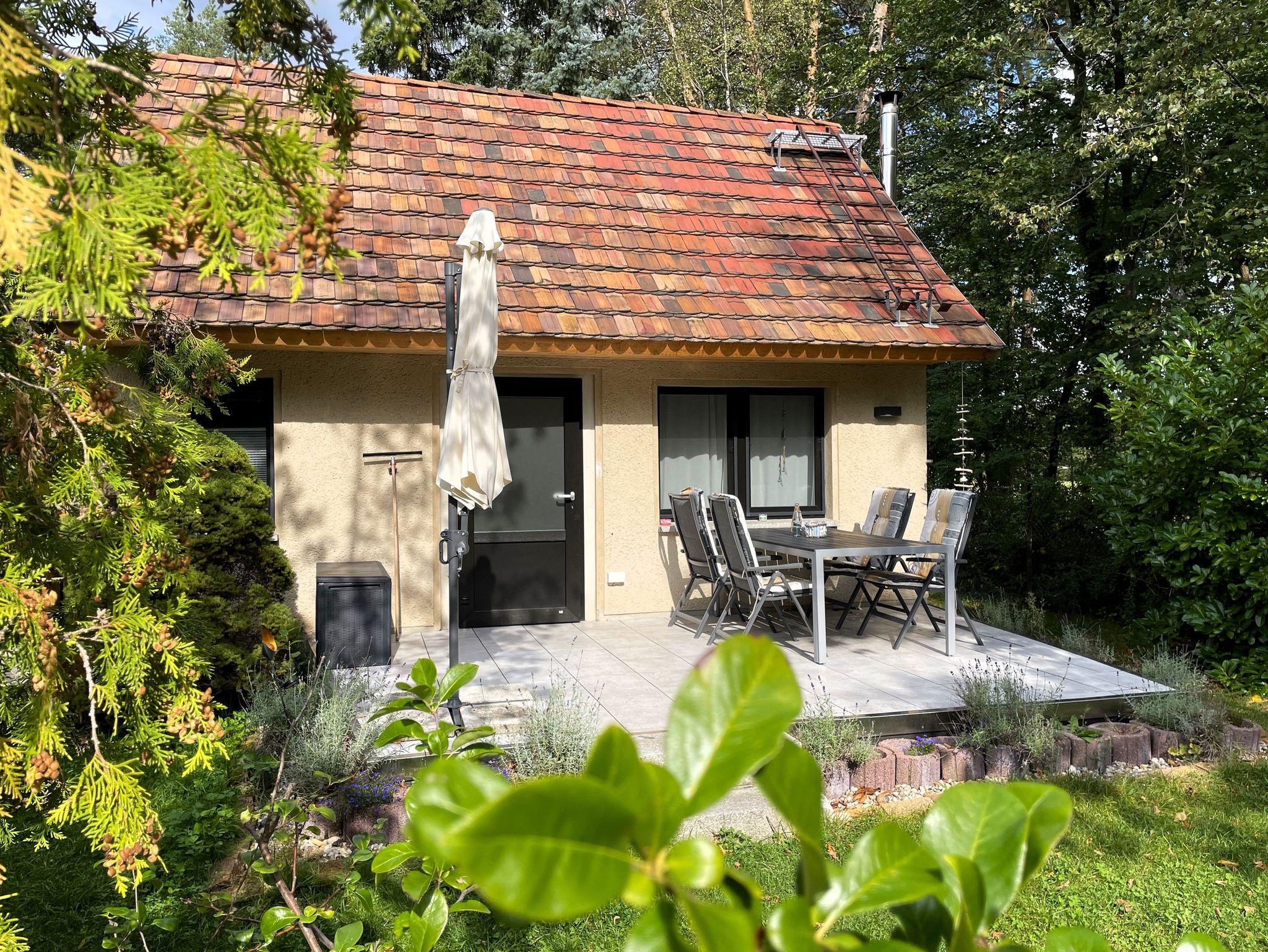 Im Außenbereich lädt eine große Terrasse mit bequemen Sitzmöbeln und Grill zu geselligen Abenden ein. Umgeben von Ruhe und Natur können Sie hier entspannen, den Vögeln lauschen oder einfach die Seele baumeln lassen.