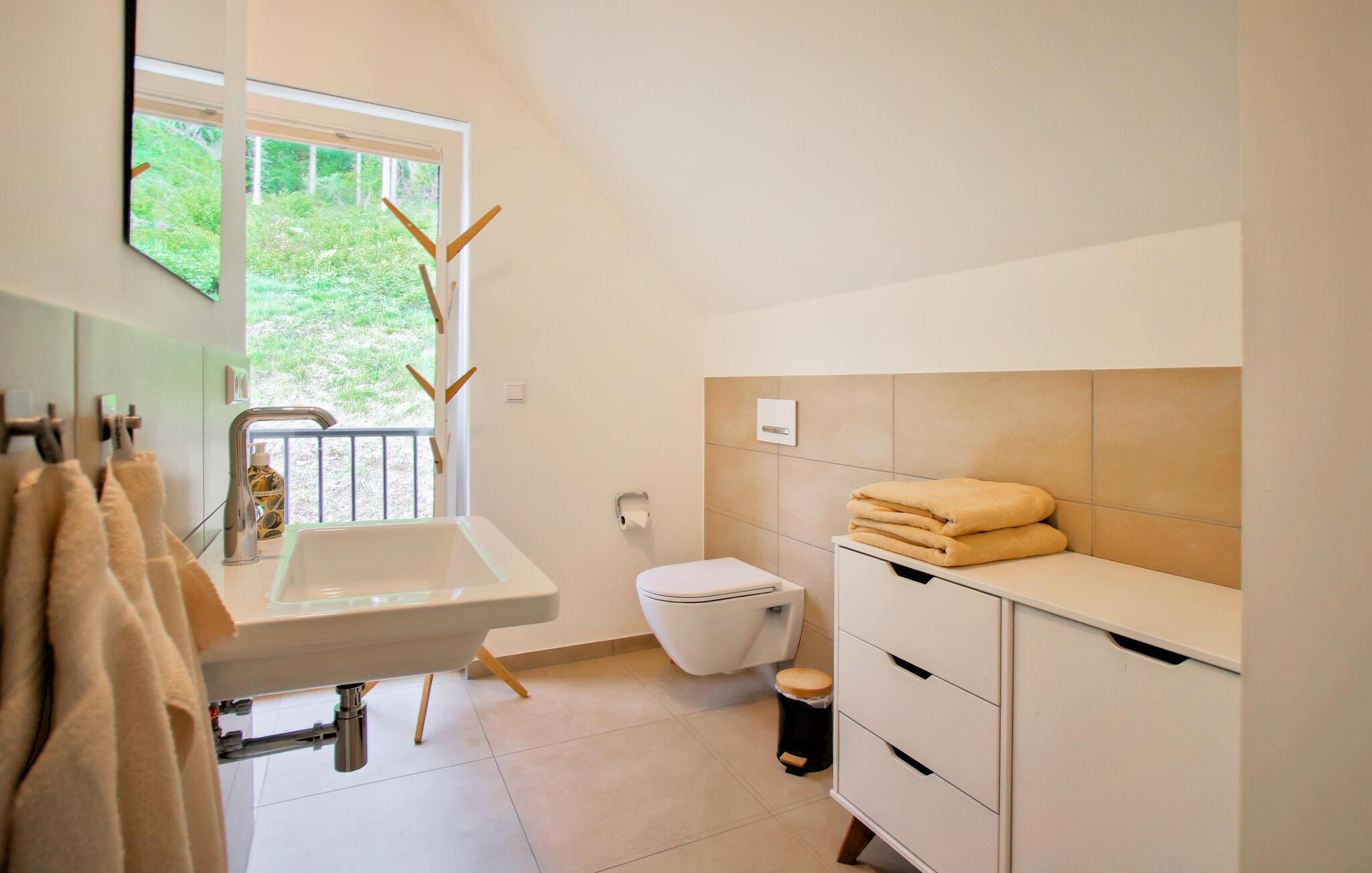 Freuen Sie sich auf Naturgenuss pur: In diesem Luxusferienhaus im Bergthalresort mit Sauna gelingt die Auszeit vom Alltag komplett.