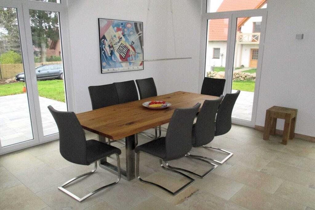 This new and very high-quality holiday home "Wind & Wellen" in Lauterbach on the island of Rügen offers a special ambiance for 4 guests (plus a small child if needed). It features a fireplace in the living room, 2 bedrooms, a state-of-the-art fitted kitchen, an exclusive shower room, and underfloor heating. The modern and clean furnishings provide plenty of space and open areas. Parking and internet/Wi-Fi are free of charge.
