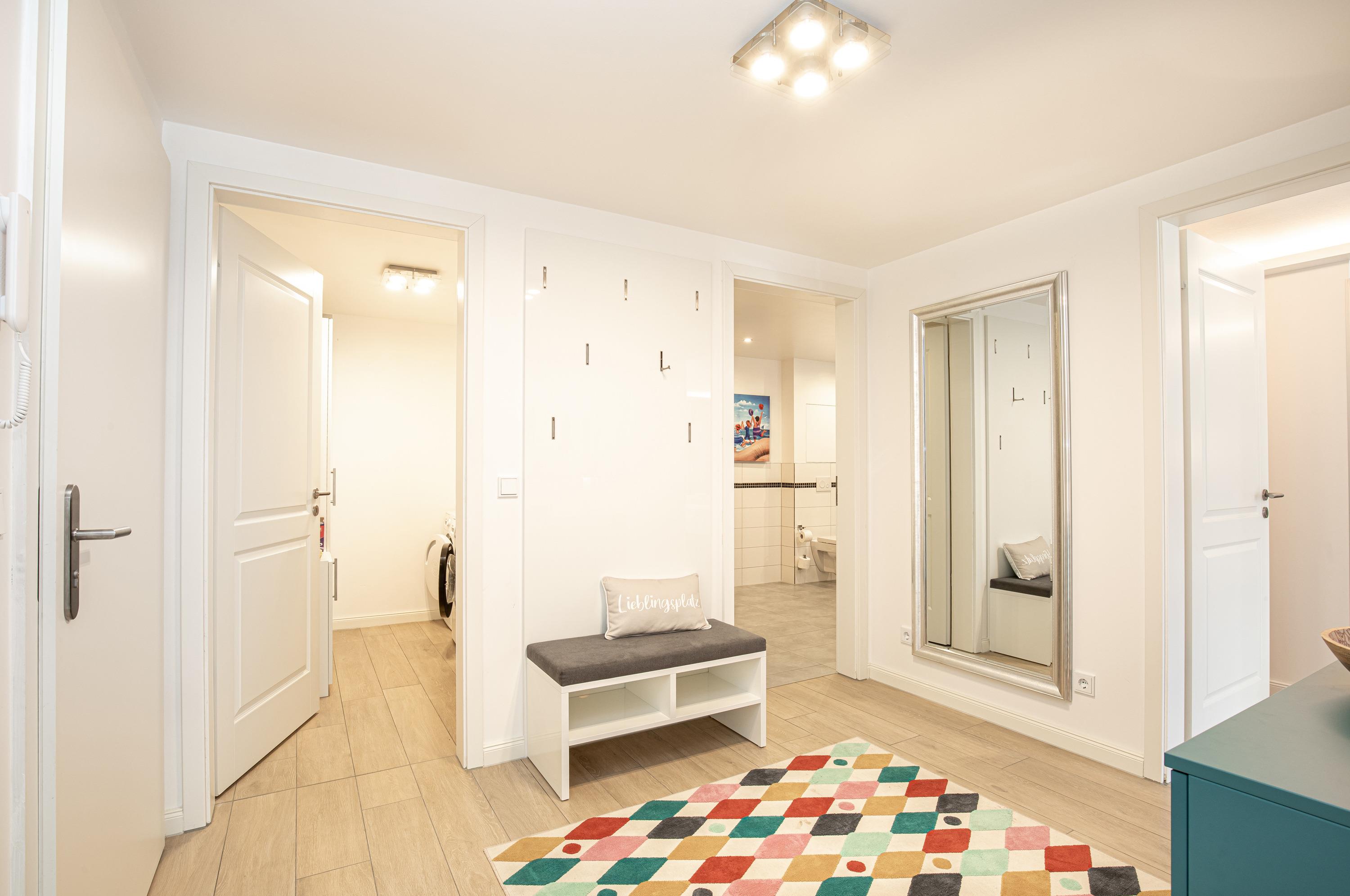 Die Wohnung selbst überzeugt, u.a. mit kostenfreien WLAN, kostenfreien Parkplatz und ihrer hochwertigen Ausstattung. Die bekannten Seebäder Sellin, Binz und Göhren sind nur wenige Kilometer entfernt.