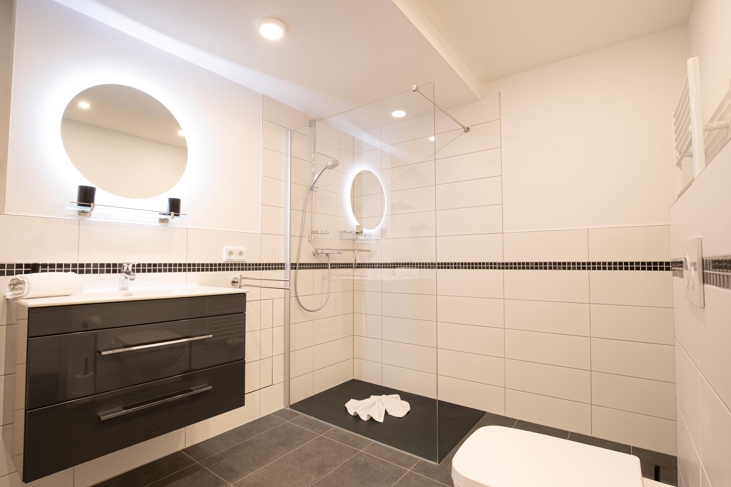 In Lauterbach - einem Ortsteil der Gemeinde Putbus - ist Anfang 2023 diese wunderschöne Ferienwohnung entstanden. Auf gut 73 m² verfügt dieses stilvoll eingerichtete Domizil über einen großzügigen Wohnbereich, einem wunderschönen Schlafzimmer einer hochwertigen Küche, ein Badezimmer mit einer ebenerdigen Dusche und einem großzügigem Flur. Bequem erreichen Sie die Wohnung im Erdgeschoss des neu erbauten Hauses welches zusätzlich über einen behindertengerechten Hauseingang verfügt. In unmittelbarer Nähe des Objektes befindet sich der große Hafen sowie die beliebte Touristenattraktion "Rasender Roland". Eine urige Dampfeisenbahn, welche seit vielen Jahren Urlauber auf der Insel begeistert. Diese lädt auch Sie zu einer unvergesslichen Fahrt über die Insel Rügen ein. Ebenso ist dieses Domizil eine gute Basis für Aktivurlauber, welche gerne mit dem Fahrrad die Insel erkunden möchten. Die Nähe zum großen Hafen in Lauterbach lädt zu jeder Jahreszeit zu einem Spaziergang ein, welcher sich bei Bedarf mit einem Besuch in einem der zahlreichen Restaurants vor Ort verbinden lässt. Auch ein Edeka-Markt befindet sich in der Nähe um Sie mit Waren des täglichen Bedarfs zu versorgen.