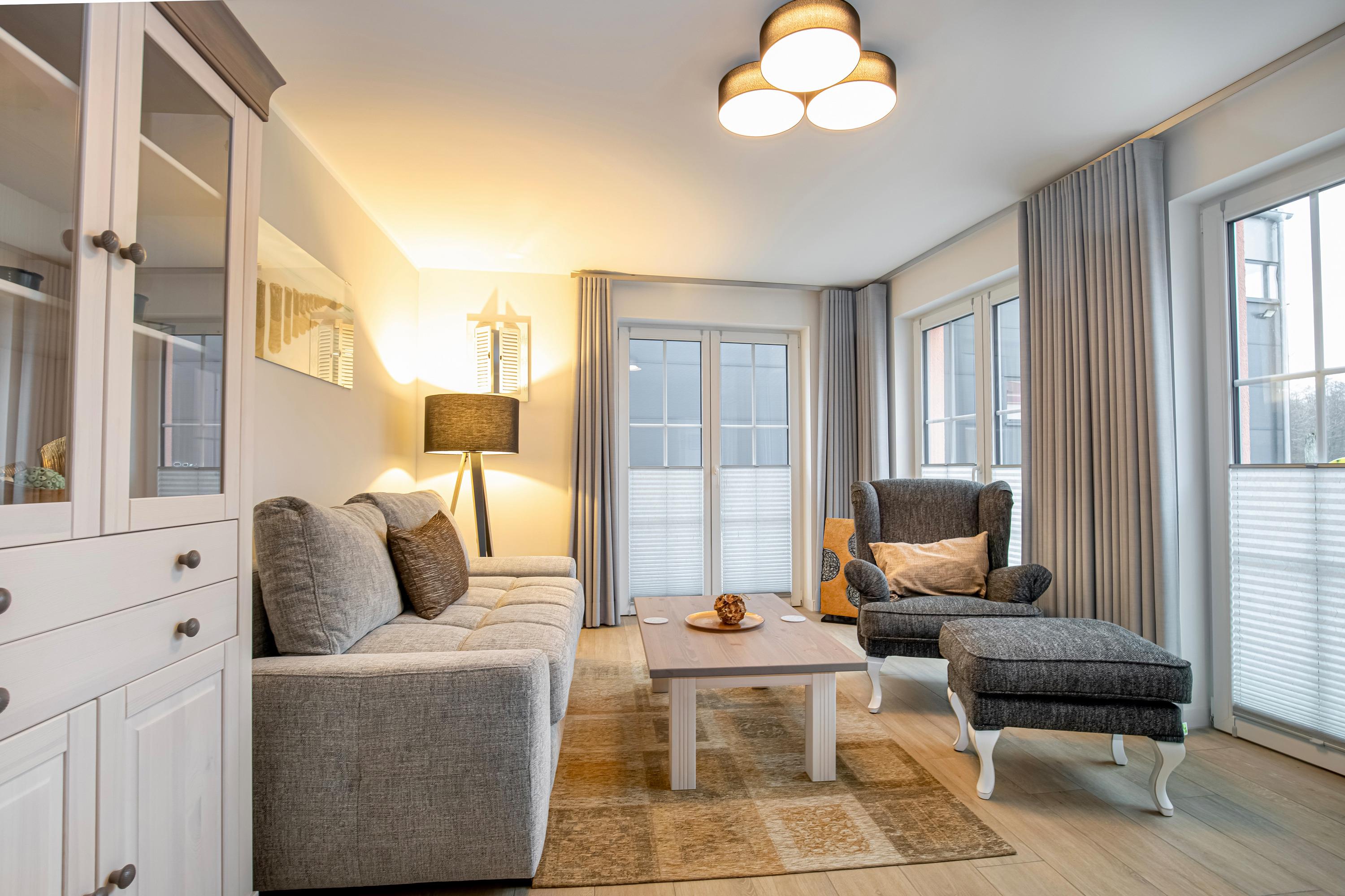 Die Wohnung überzeugt unter anderem mit ihrer hochwertigen Ausstattung, kostenfreiem WLAN und einem kostenfreien Parkplatz. Die bekannten Seebäder Sellin, Binz, Baabe und Göhren, mit ihren feinsandigen Stränden, sind nur wenige Kilometer entfernt und auch gut mit dem öffentlichen Nahverkehr zu erreichen.