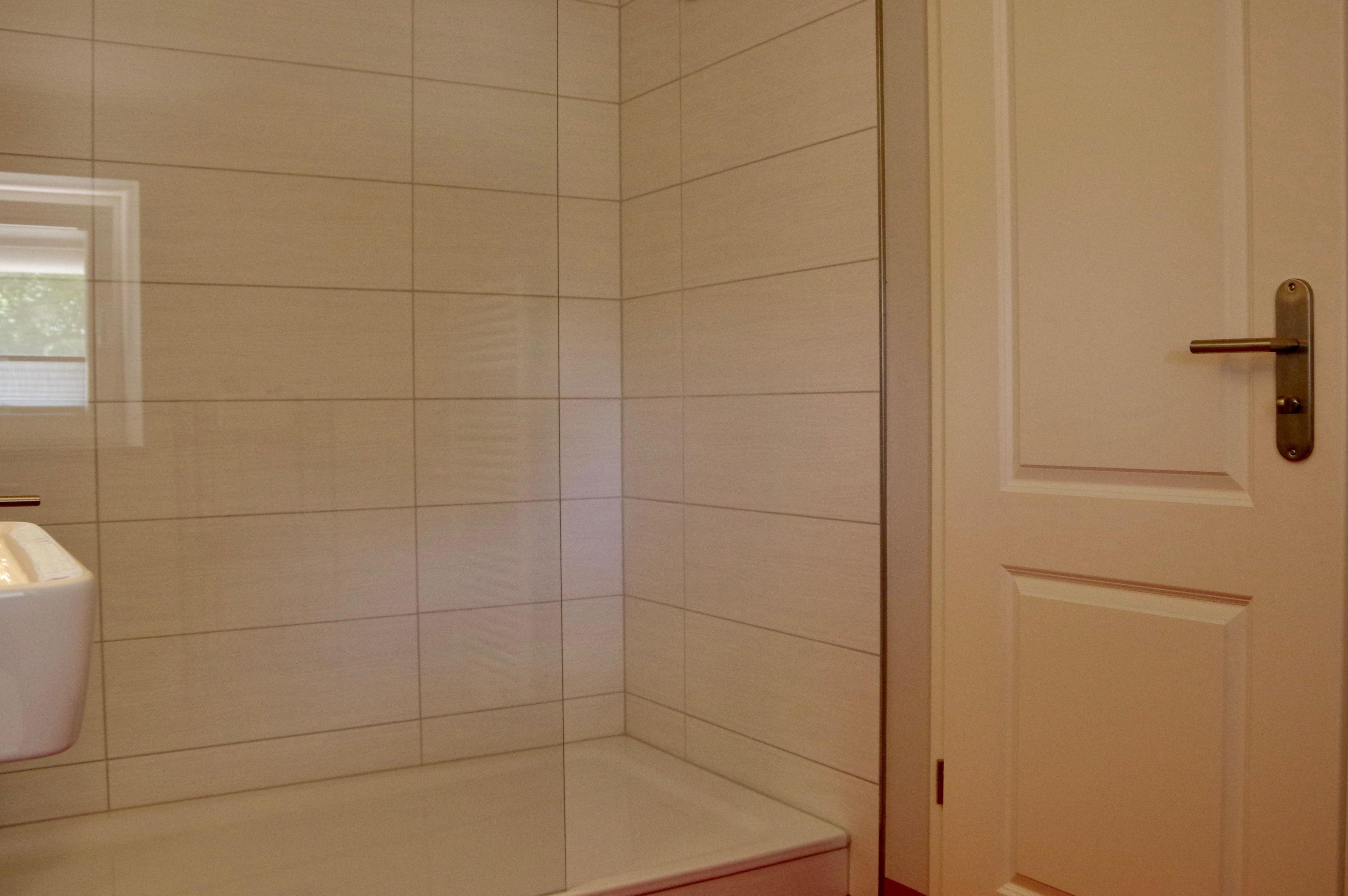 Das Bad ist mit einer extragroßen Dusche mit Echtglasabtrennung sowie hochwertigen Sanitärobjekten eingerichtet.