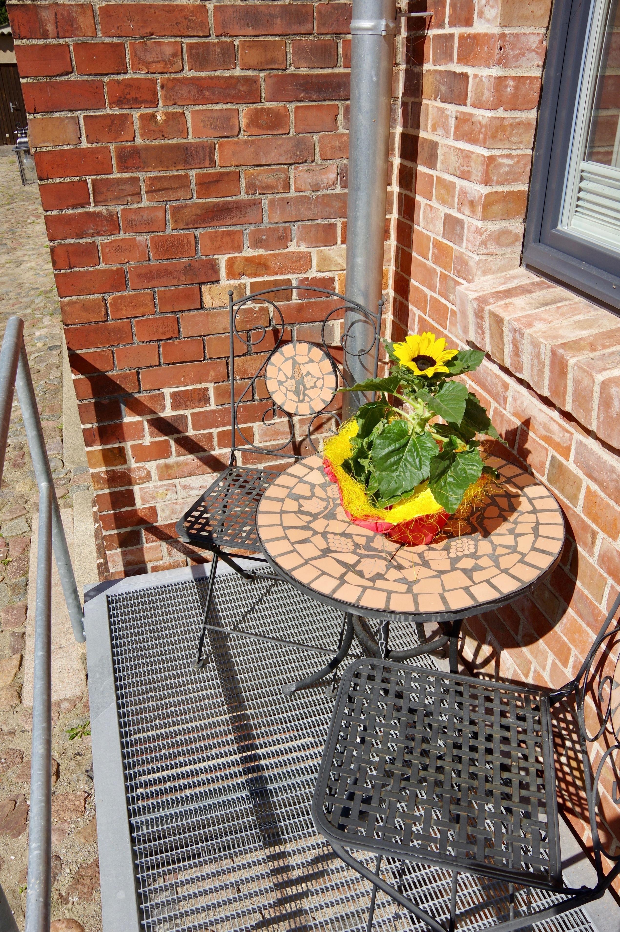 große Terrasse (Südausrichtung) mit Gartenmöbeln