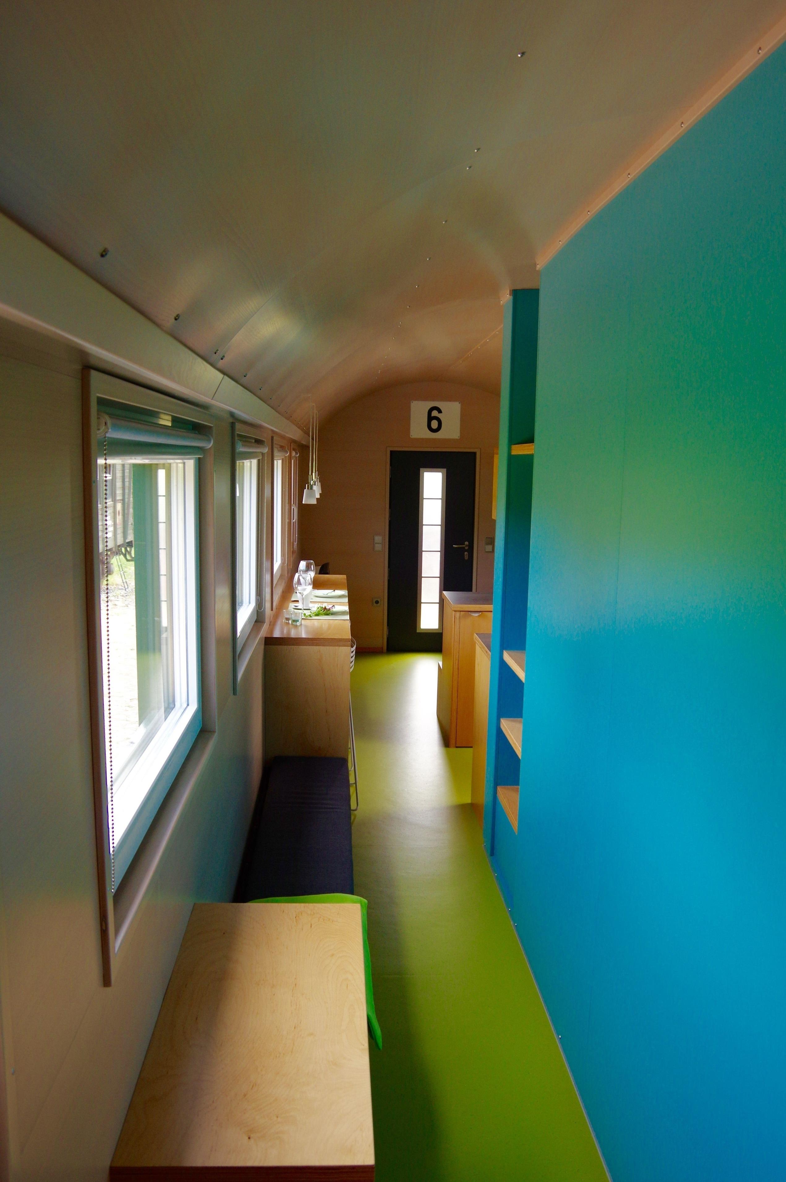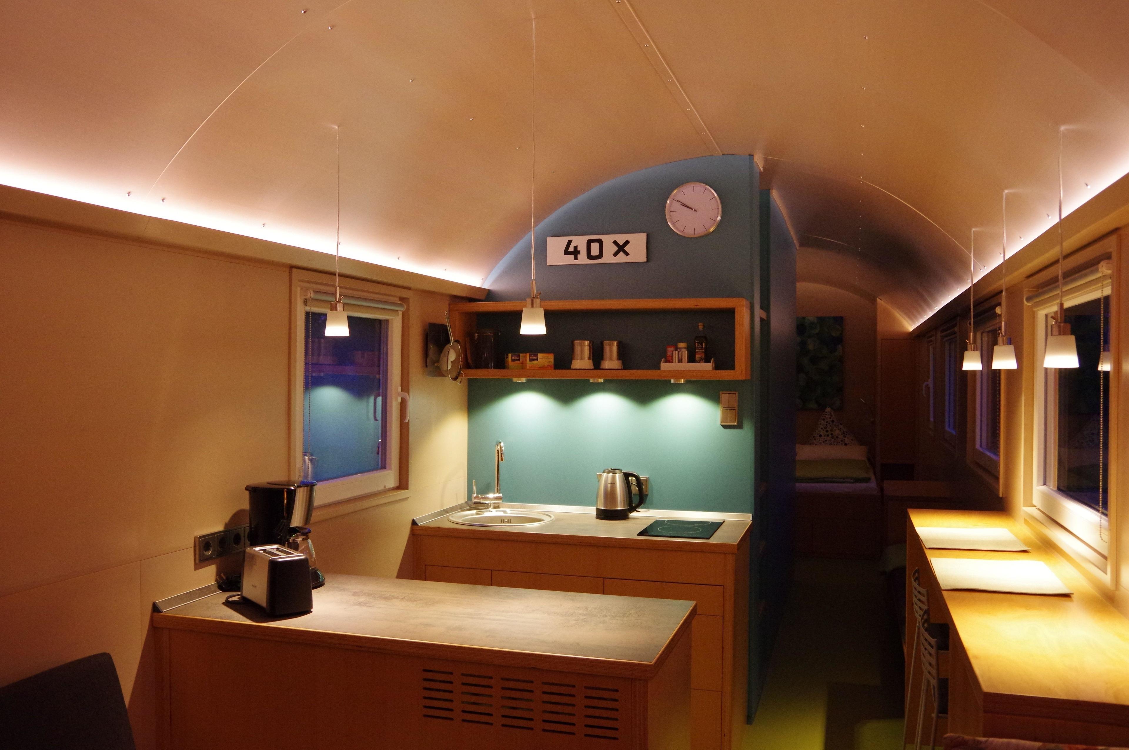 Der Waggon wurde komplett umgestaltet, versprüht aber immer noch, nicht zuletzt durch die "Konstruktion", den Charme der Eisenbahnromantik.