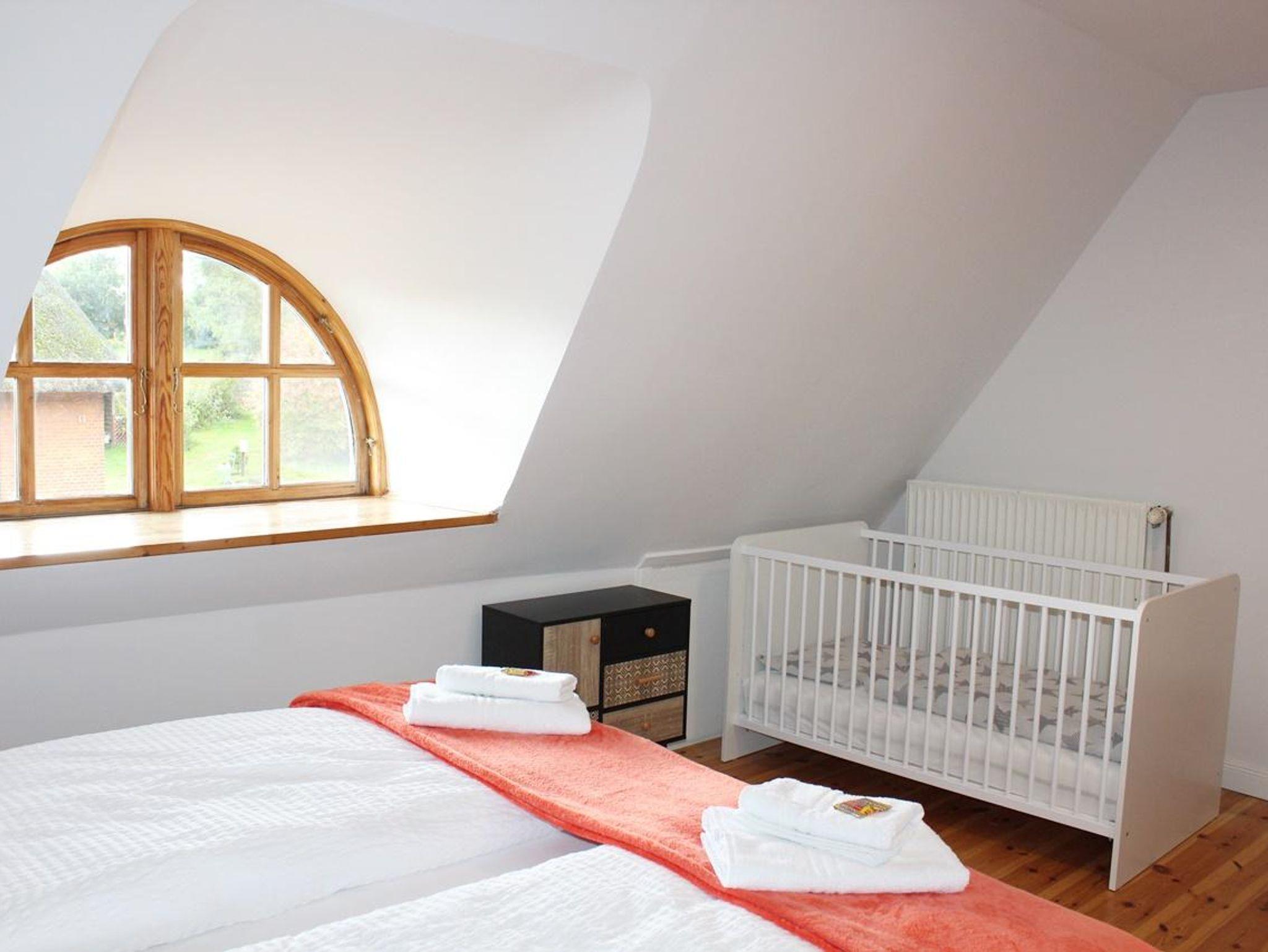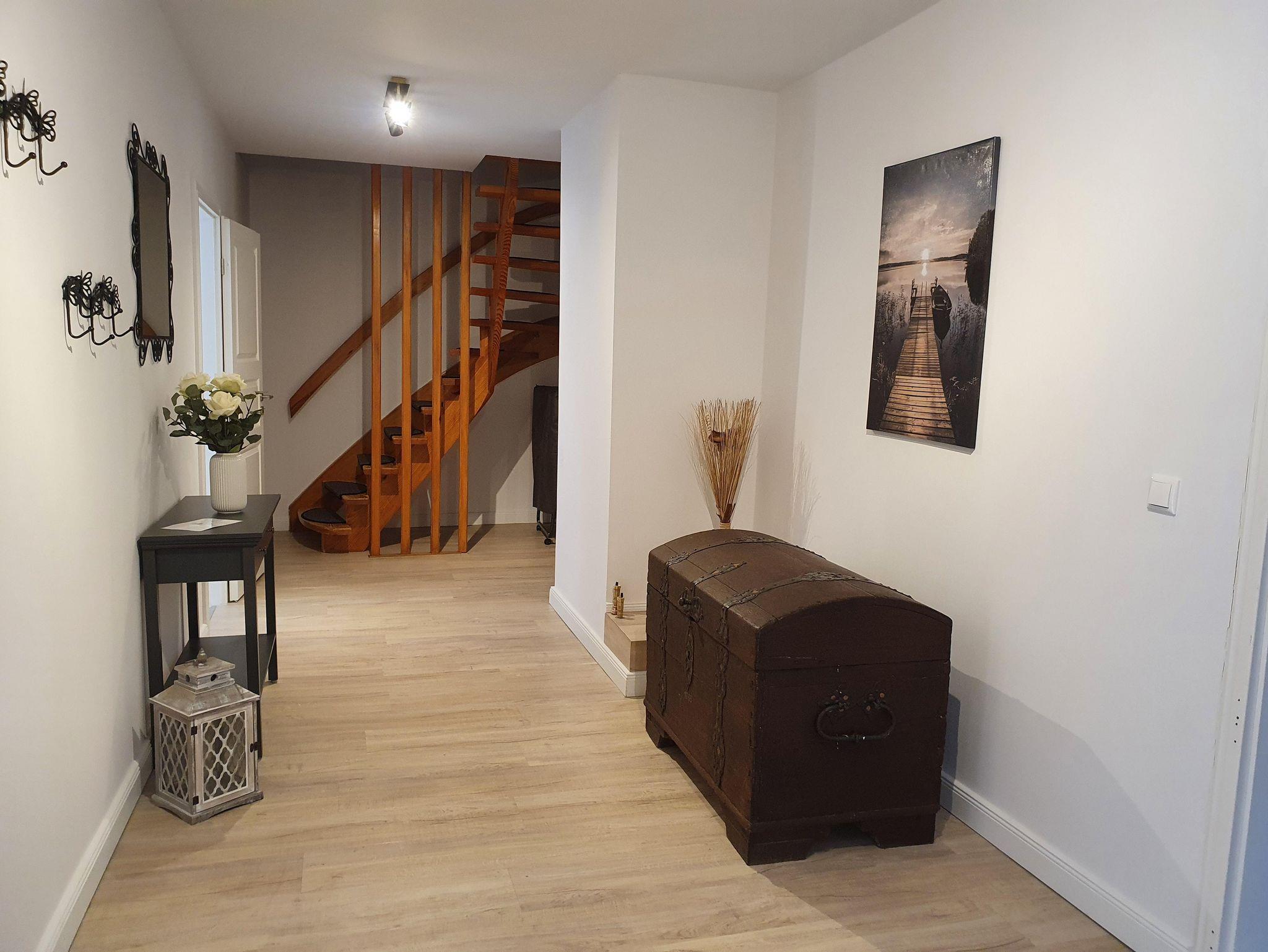 Des Weiteren verfügt das Ferienhaus über Waschmaschine, Kinderhochstuhl, freie WLAN-Nutzung, Parkplatz direkt vor dem Haus und abschließbaren Abstellraum für Fahrräder, Kanus etc. im Außenbereich.