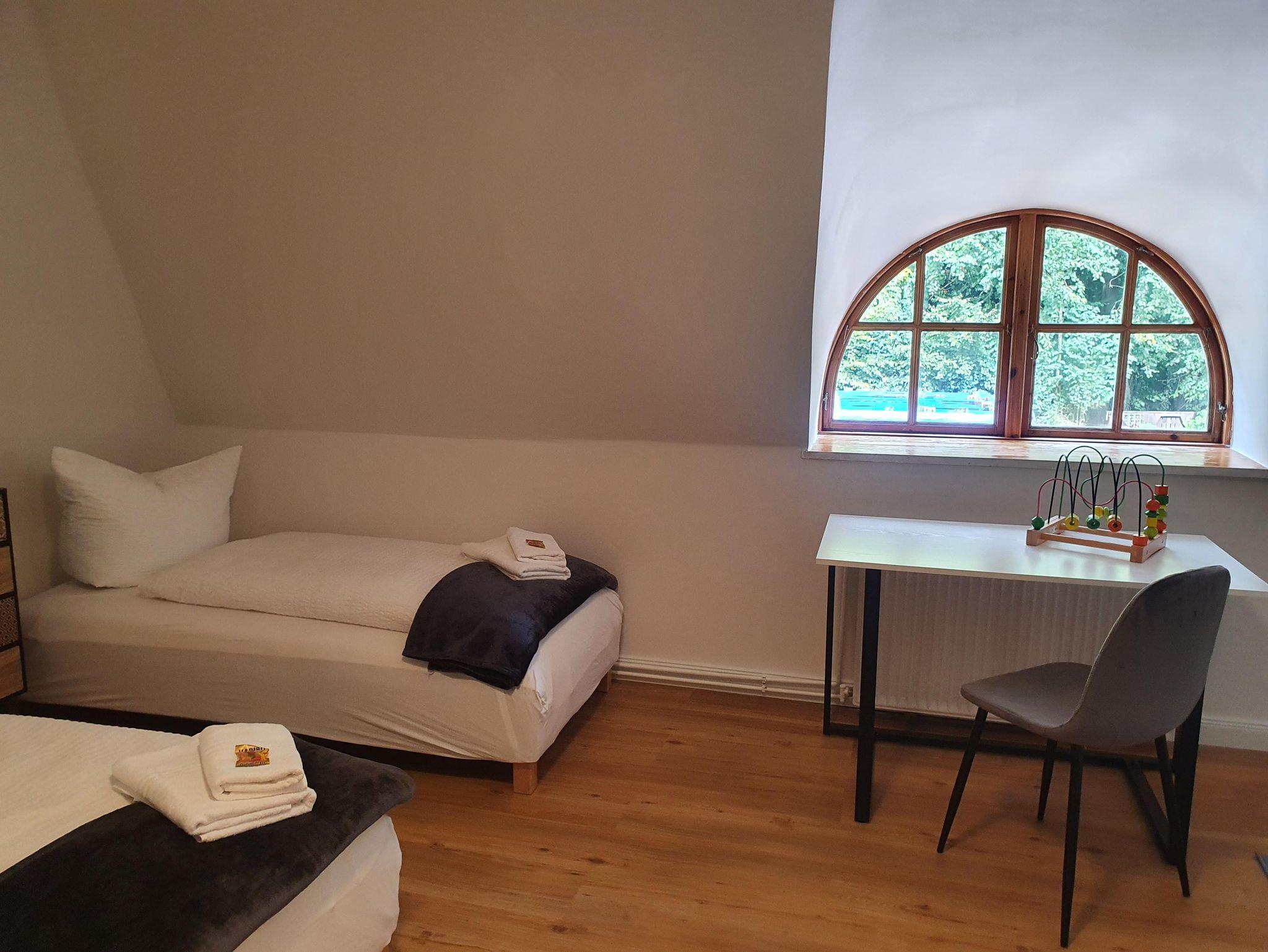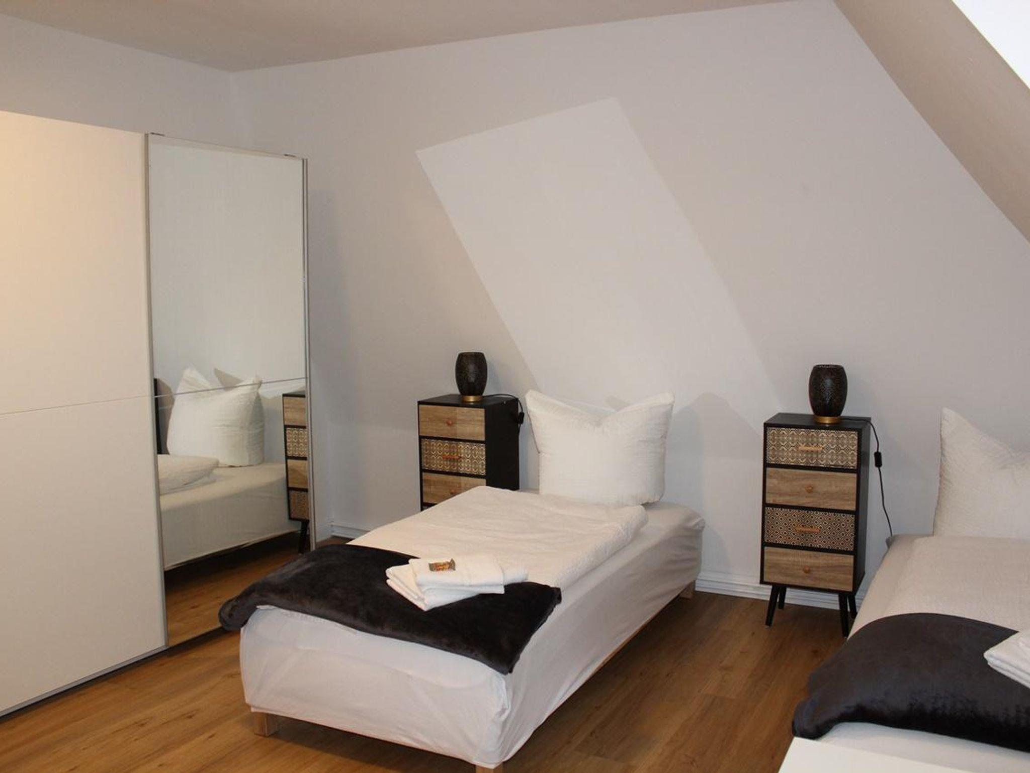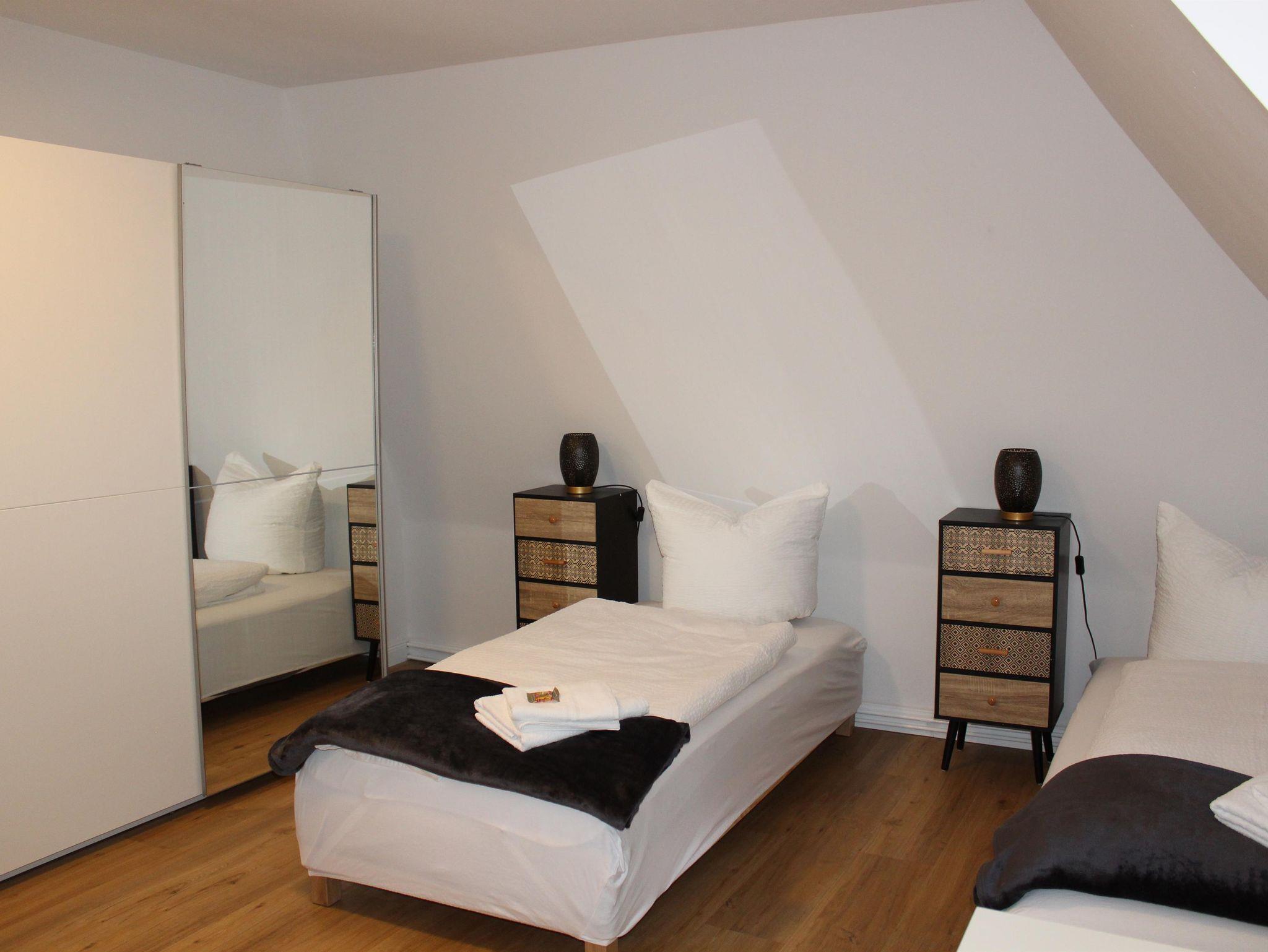 3. Schlafzimmer: zwei Einzelbetten (je 0,90 x 2,00m), Schreibtisch, zweitüriger Spiegelschrank, Kommode