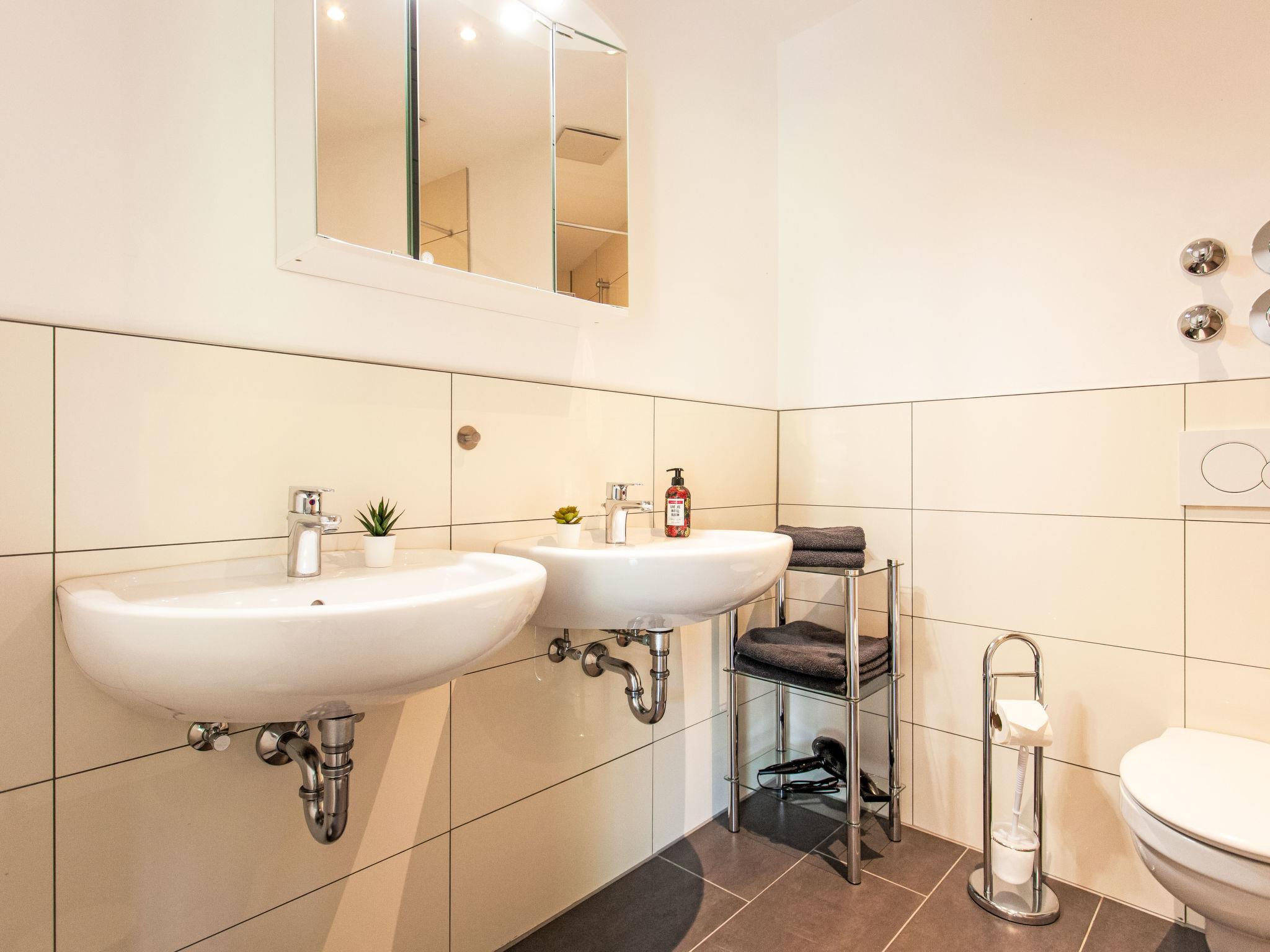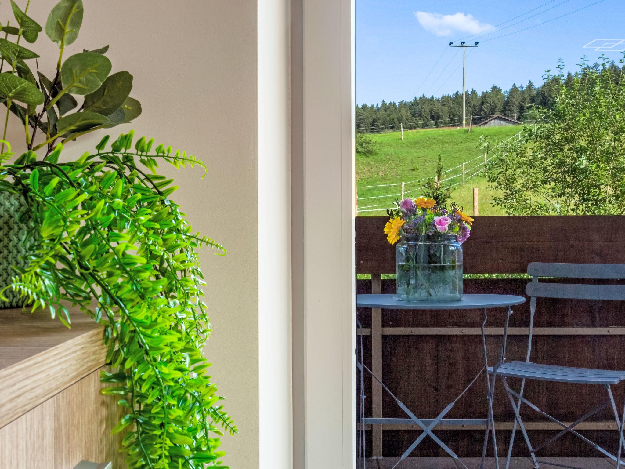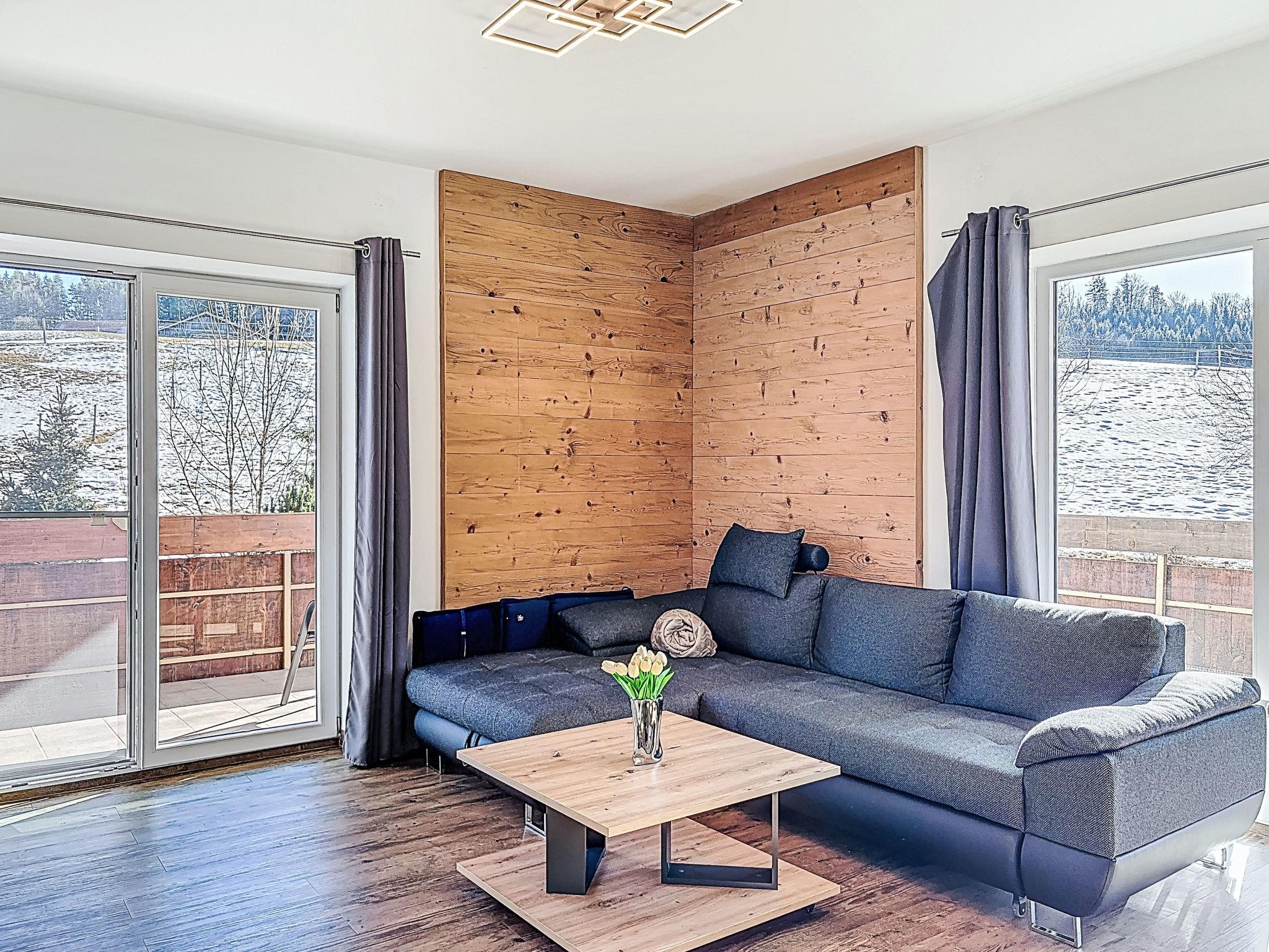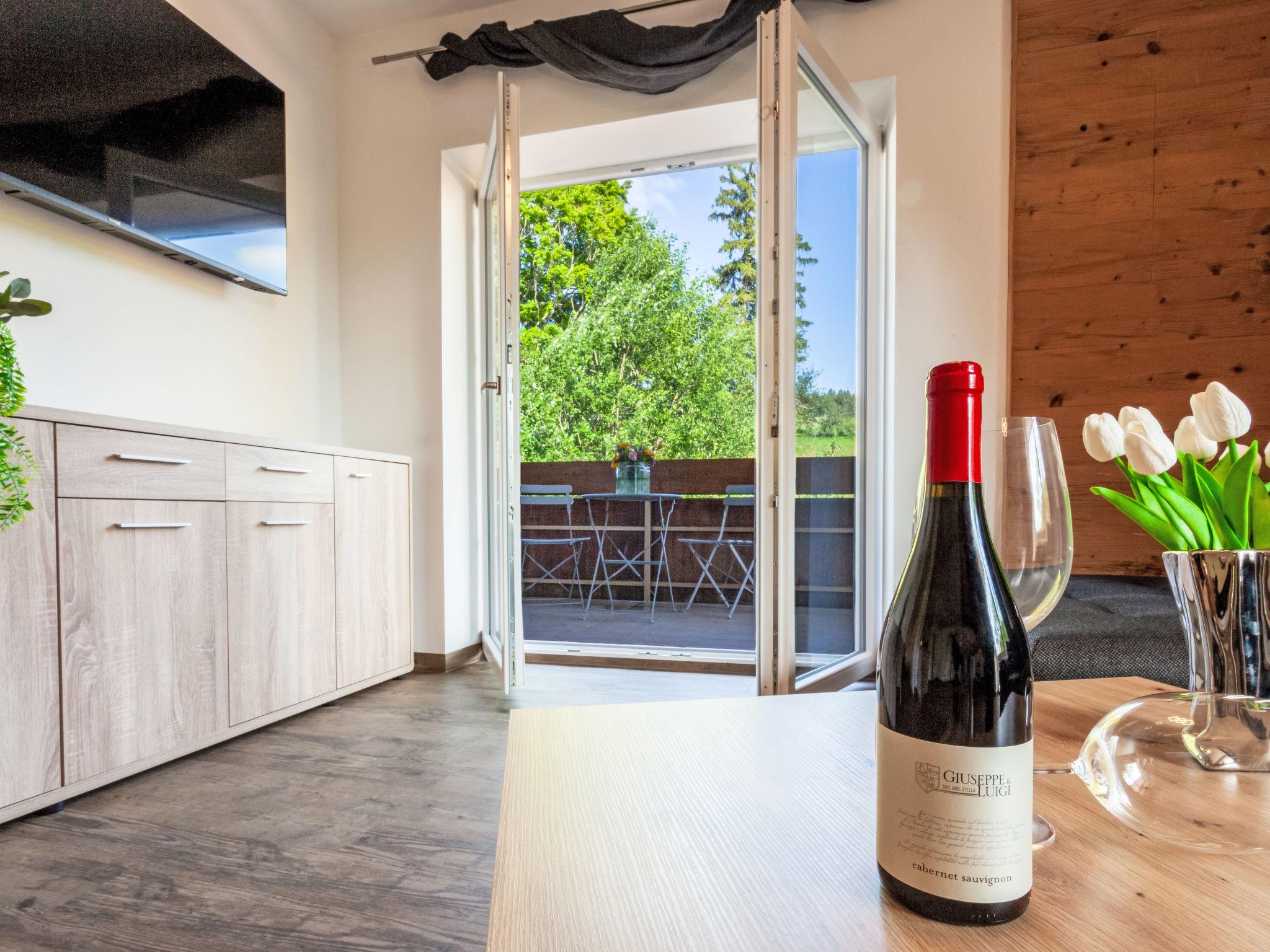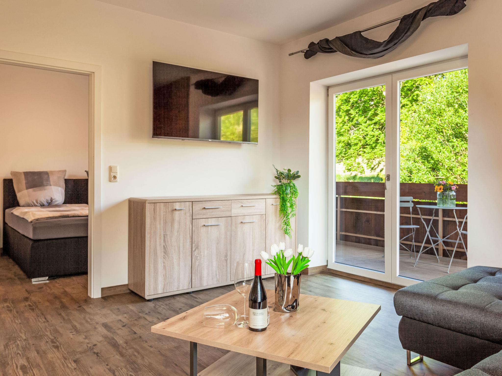 "Alpenlodge Rotspitze", 2-room apartment 60 m2, on the upper floor. Bright, modern and cosy furnishings: living/sleeping room with 1 double sofabed and cable TV (flat screen). Exit to the balcony. 1 room with 1 double bed (180 cm, length 200 cm), cable TV (flat screen). Exit to the balcony. Open kitchen (oven, dishwasher, 4 ceramic glass hob hotplates, toaster, kettle, electric coffee machine) with dining table. Shower/WC, double hand-basin. Heating. Large balcony. Balcony furniture, deck chairs (1). Beautiful view of the countryside. Facilities: hair dryer. Internet (WiFi, free). Parking (1 car), garage (extra) at the house. Please note: not suitable for children under 6 years. Non-smokers only. Maximum 2 pets/ dogs allowed. Smoke alarm.