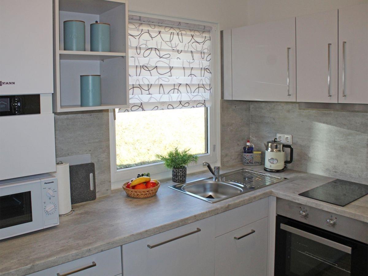 Voll ausgestattete Küche: Kühlschrank, Herd mit Dunstabzug, Backofen, Geschirrspüler, Gefrierfach, Microwelle, Wasserkocher, Toaster, Kaffeemaschine, Besteck, Geschirr, Gläser, Töpfe und alle gebräuchlichen Küchenutensilien.