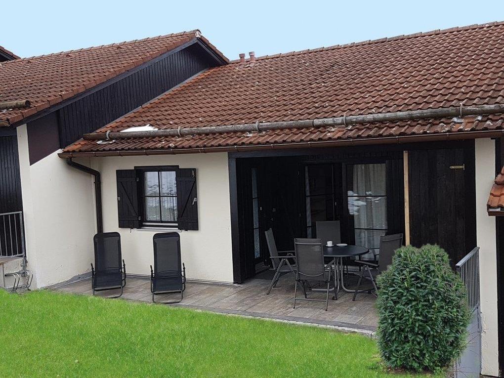 Das Haus hat eine große Süd-Terrasse, die mit einem Tisch, Stühlen und zwei Liegestühlen ausgestattet sind. Es gibt auch einen Fahrradständer für bis zu 3 Fahrräder. Vor der Terrasse befindet sich eine Liegewiese, die zum Entspannen einlädt. Das Haus liegt in unmittelbarer Nähe zum Spiel- und Sportplatz und ist der ideale Ausgangspunkt für Wanderungen und Radtouren. Der Fußweg zum nahegelegenen Badesee beginnt direkt am Haus und ist nur 600m entfernt.