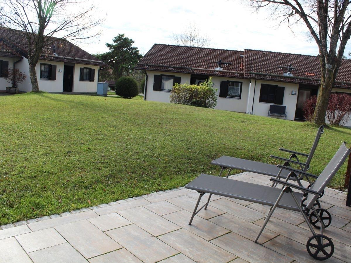 Die Süd-West-Terrasse ist möbliert mit einem Gartentisch und 6 Stühlen, sowie zwei Sonnenliegen. Ein Sonnenschirm kann an der Rezeption ausgeliehen werden.