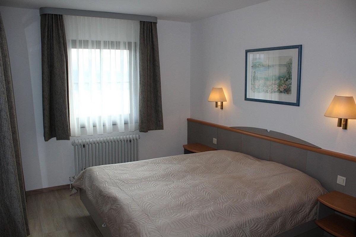 • Schlafzimmer/Kinderzimmer mit zwei Einzelbetten, Tisch mit Stuhl, Kleiderschrank