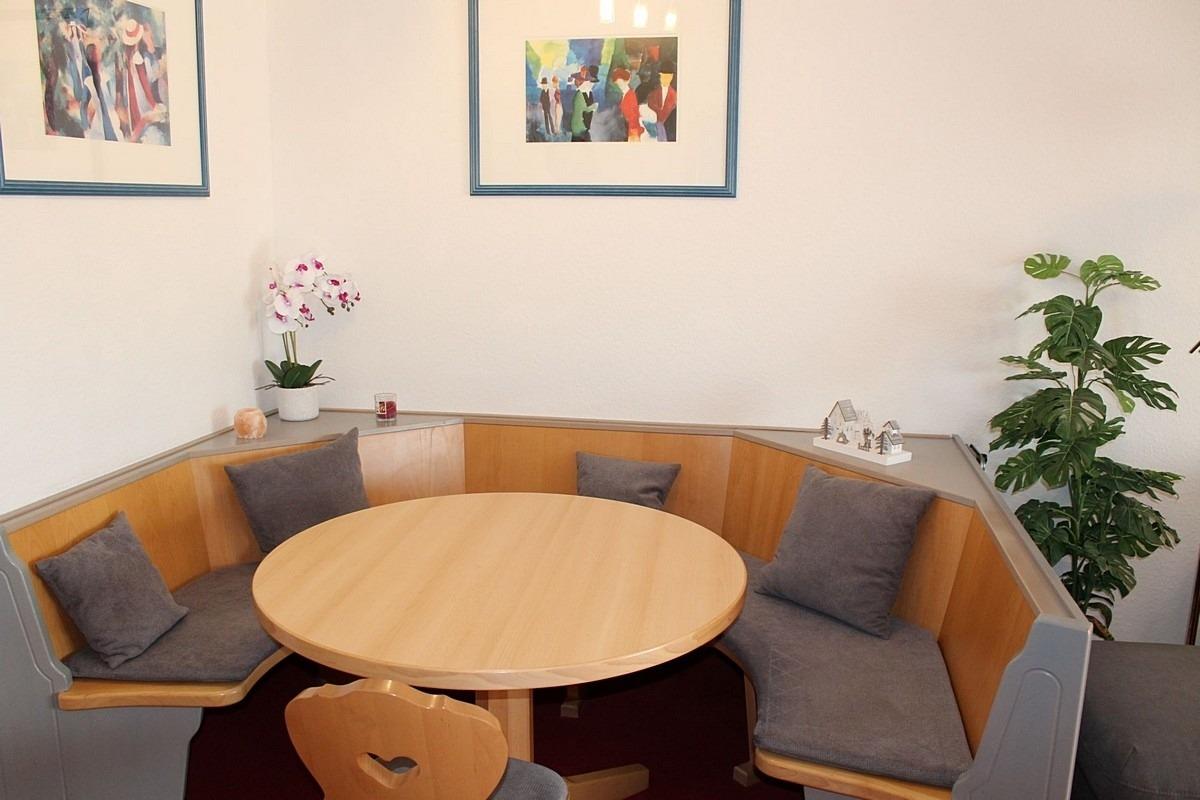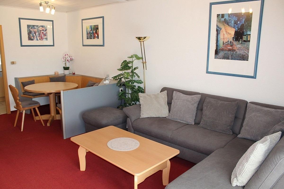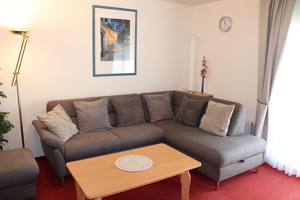 1 gemütliches Wohn-Esszimmer mit Sitzgruppe, Polstersitzgruppe, TV, Telefon und Radio.