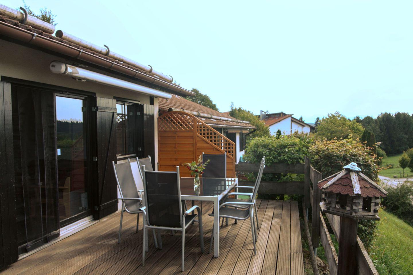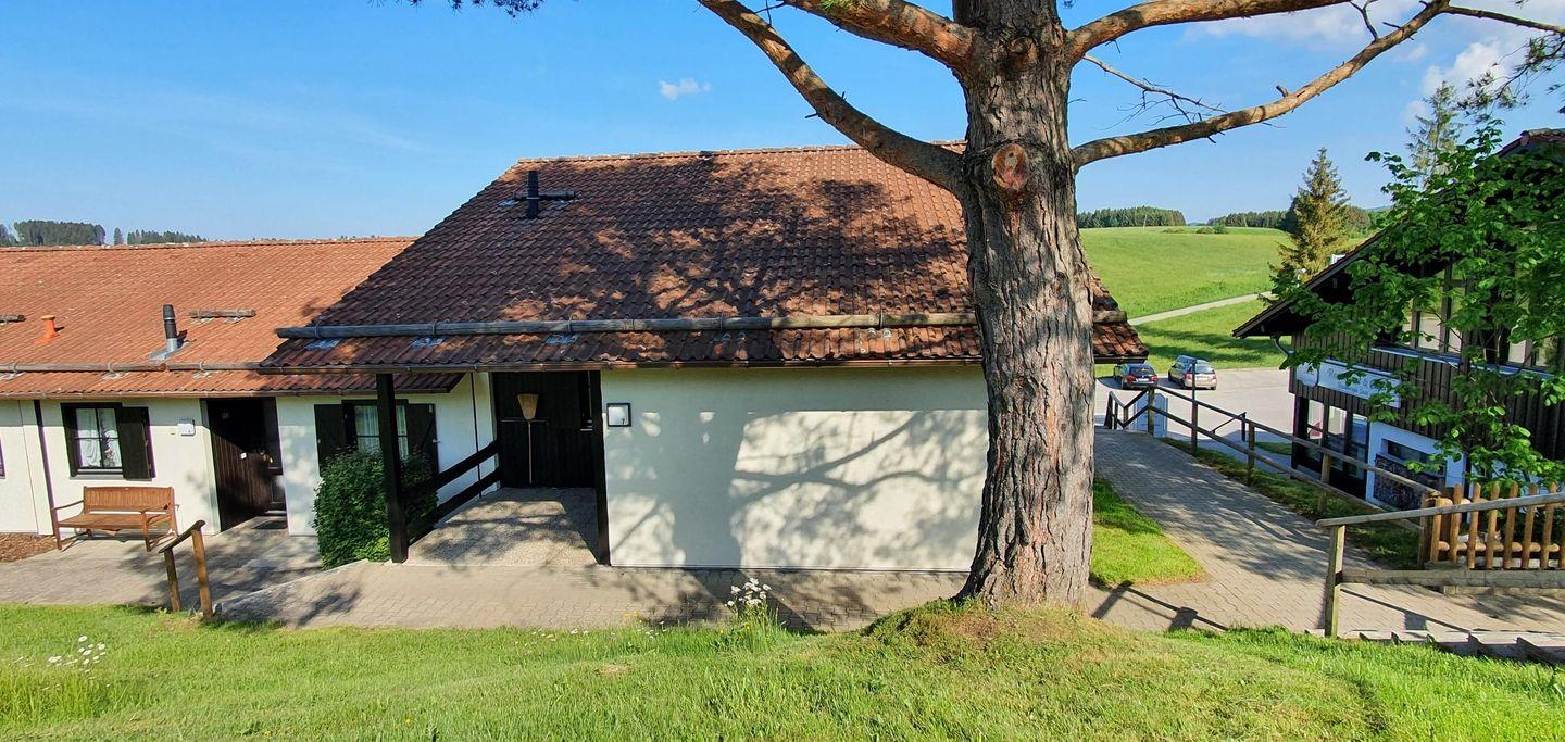 Urlaub im Feriendorf Hochbergle Haus 7, Ihrem perfekten Rückzugsort in Lechbruck am See! Diese großzügige Ferienwohnung erstreckt sich über 87 m² und bietet Platz für bis zu sechs Personen, was sie ideal für Familien und Gruppen von Freunden macht, die gemeinsam den Alltag hinter sich lassen möchten. Ein Eckhaus in Randlage, nahe zu Parkplatz, Restaurant und Rezeption.