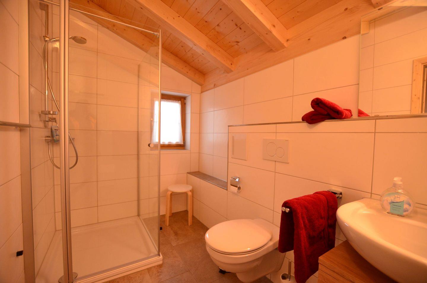 Im Erdgeschoß erwartet Sie das Badezimmer mit einer Dusche, WC und Waschbecken und eine Sauna für die Erholung.