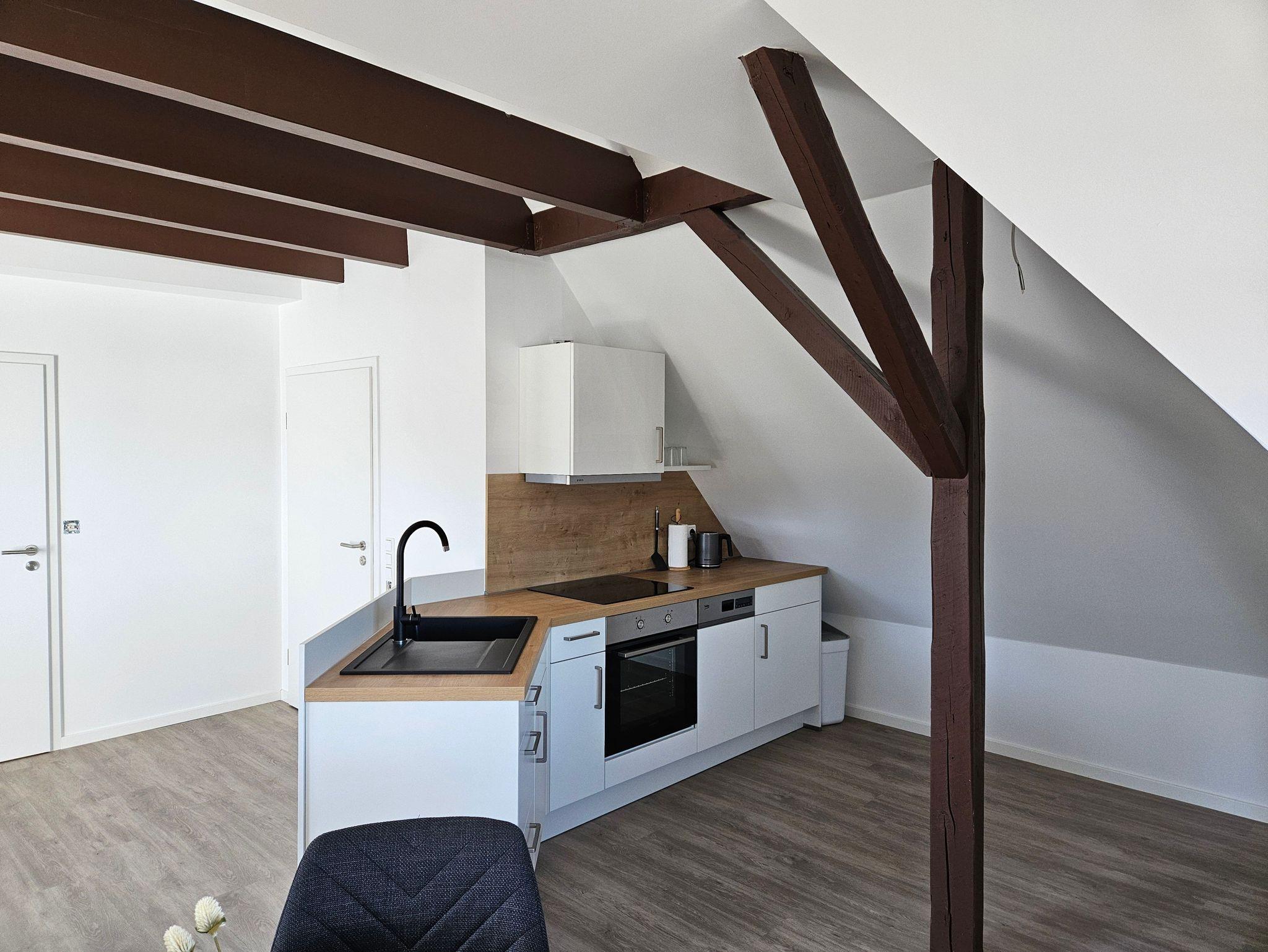 Im Gebäude befinden sich zwei Wohnungen. Im 1. Obergeschoss gibt es Platz für 5 Personen auf ca. 80 qm Wohnfläche, das darüberliegende Apartment ist für 2 Personen mit ca. 50 qm ausgelegt. Beide Wohnungen bieten Komfort und eine ideale Ausgangslage für Erkundungen. Hunde-max. 2- können ausschließlich nur über die Ferienwohnung Stadtblick 2 gebucht werden !