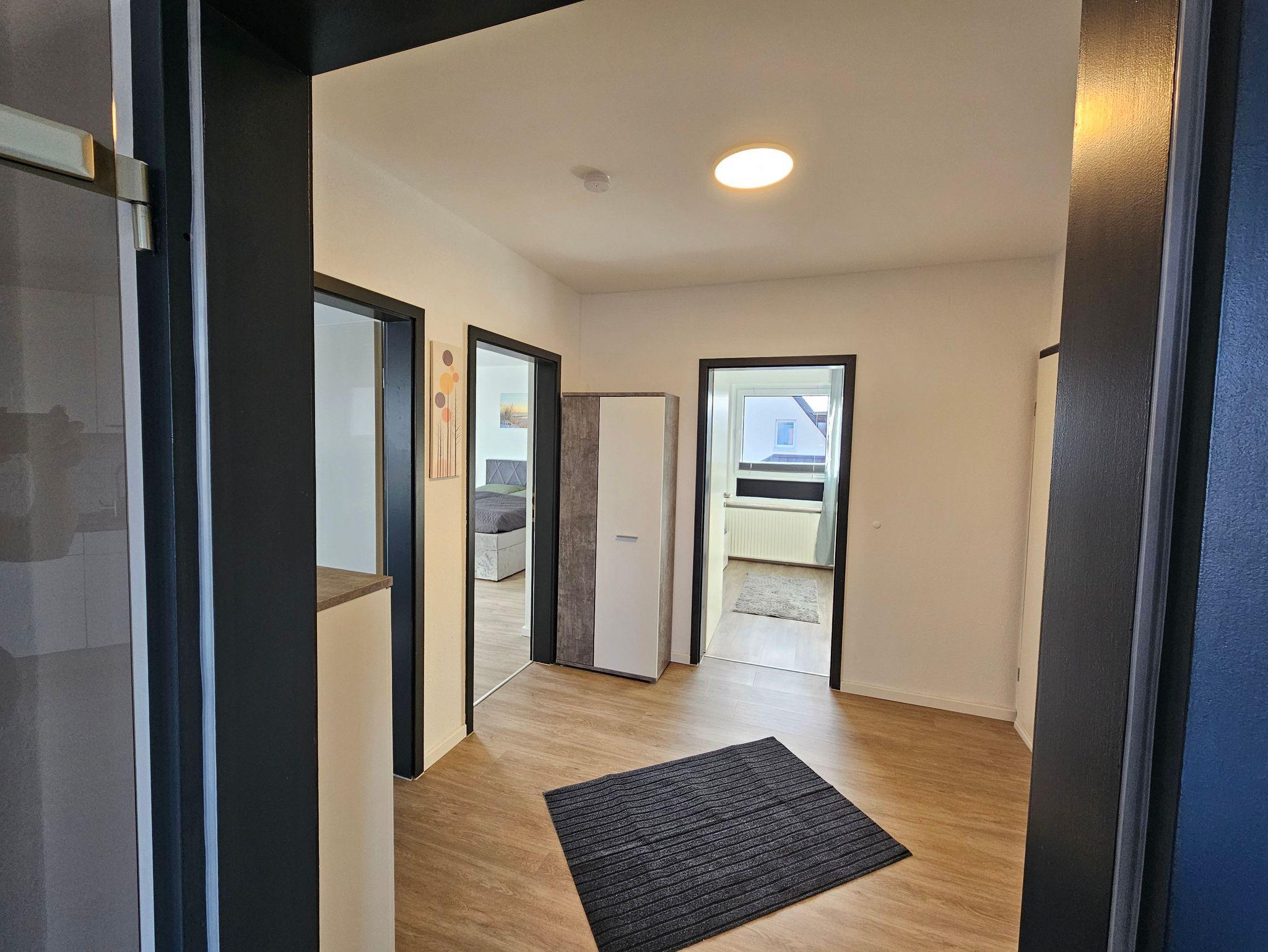 In dieser schönen in 2025 kernsanierten ca. 80 qm großen Ferienwohnung mit 2 Schlafzimmern mit jeweils 2 Schlafplätzen, 1 Wohnzimmer mit gemütlicher Sofaecke, TV und WLAN, einer voll ausgestatteten Küche mit Balkon und einem Duschbad finden bis zu 5 Personen Platz. Die in der Küche vorhandene Waschmaschine ist mit einem Münzautomat ausgestattet.