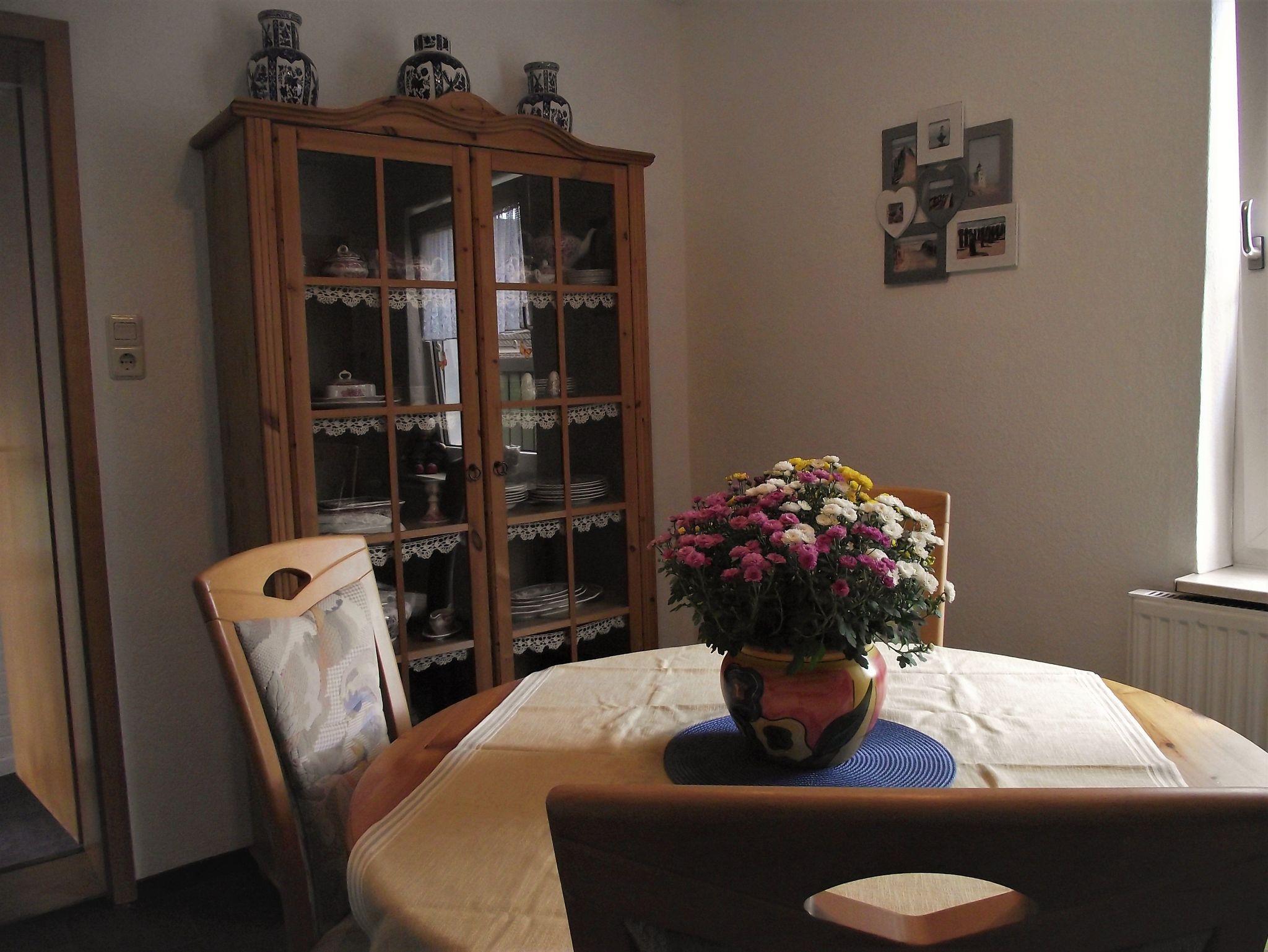 Schlafzimmer, Esszimmer Küche, Diele, Duschbad. Die Ferienwohnung ist mit