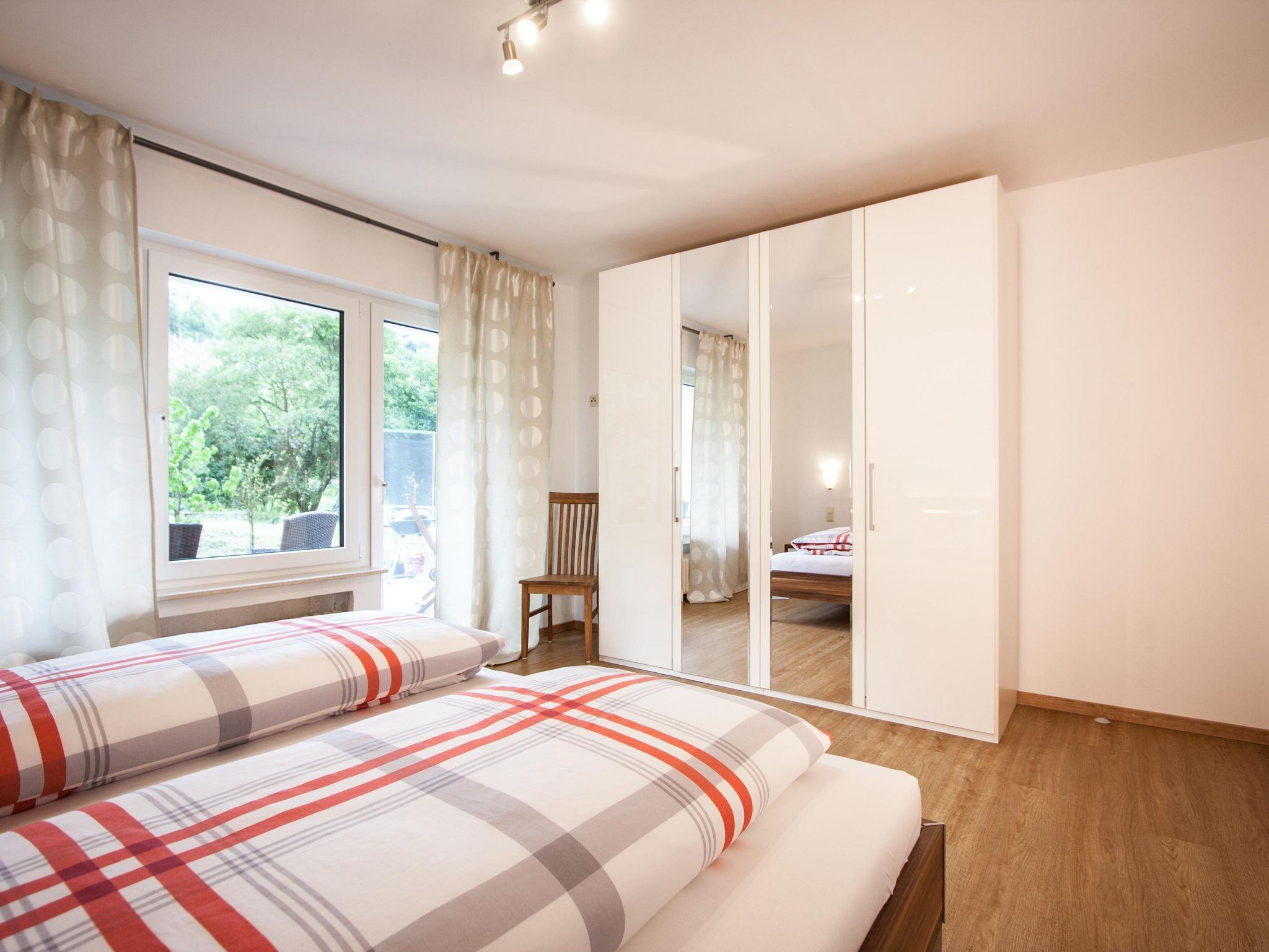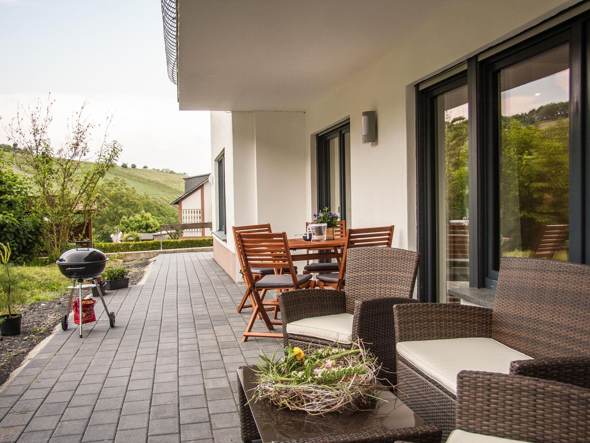 Im Moselort Lehmen, in einem ruhigen Seitental der Mosel, finden Sie unsere gemütliche Ferienwohnung vor. Diese bietet Platz für bis zu 4 Gäste, besteht aus einem großzügigien Wohnzimmer, Küche mit Esstisch, zwei Schlafzimmern, Badezimmer und einer großen Terrasse. Obwohl die Ferienwohnung eine Souterrainwohnung ist, haben Sie freie Sicht überall aus allen Räumen außer aus dem Bad (Satinato Glas). Zentral gelegen an L82. Von der großzügigen Terrasse haben Sie einen freien Blick auf einen Weinberg und in die Natur. Wir sind nicht weit weg vom Bahnhof aber Sie hören keinen Bahnlärm. In den Nachbarorten finden Sie viele Geschäfte (Rewe, Lidl, Norma, Post etc.).