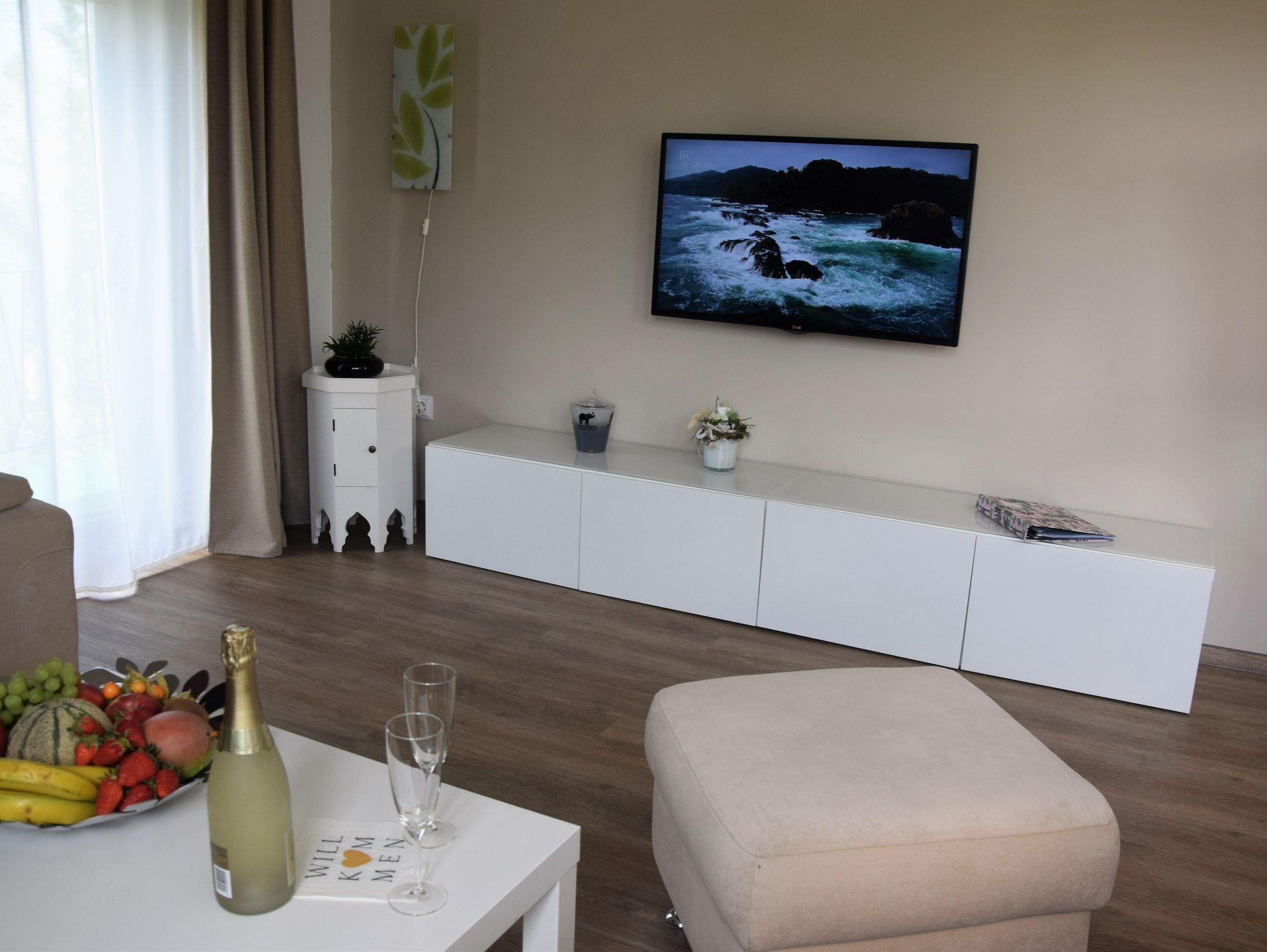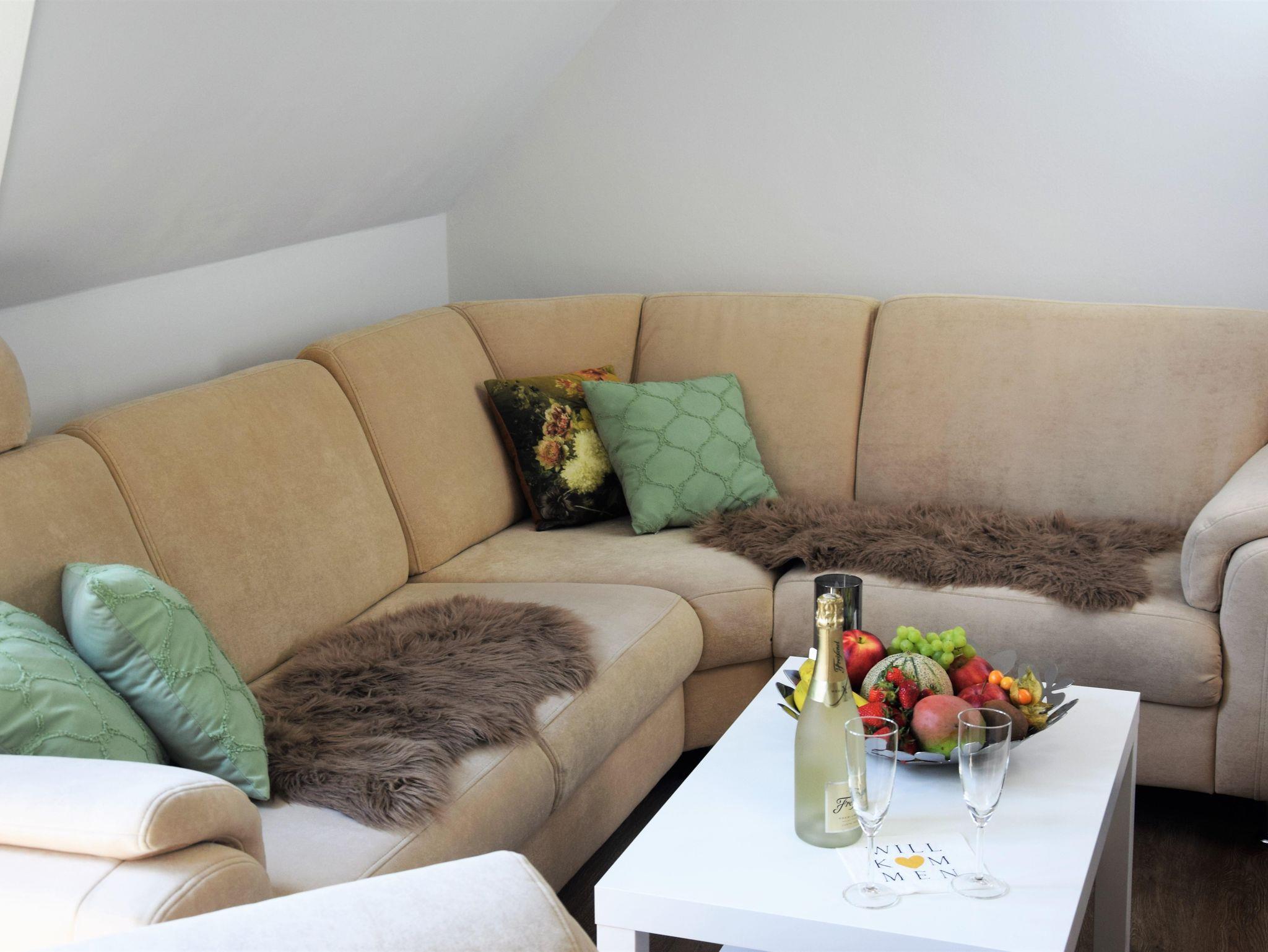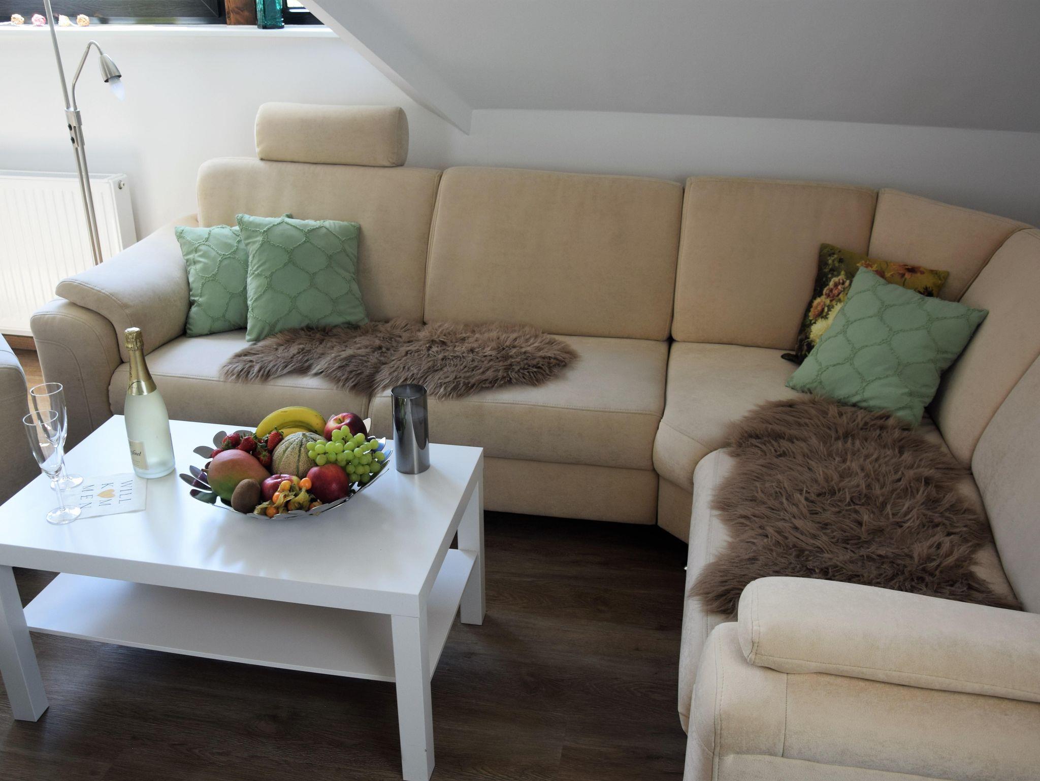 Sie besticht durch ihren gemütlichen Wohnbereich, der mit bequemen Möbeln, modernen Annehmlichkeiten und stilvoller Einrichtung ausgestattet ist. Die voll ausgestattete Küche verfügt über einen Kühlschrank, Geschirrspüler, ein Induktionskochfeld und alle notwendigen Küchenutensilien, um köstliche Mahlzeiten zuzubereiten. Eine Kaffee- und Teebar halten wir ebenfalls für sie bereit.