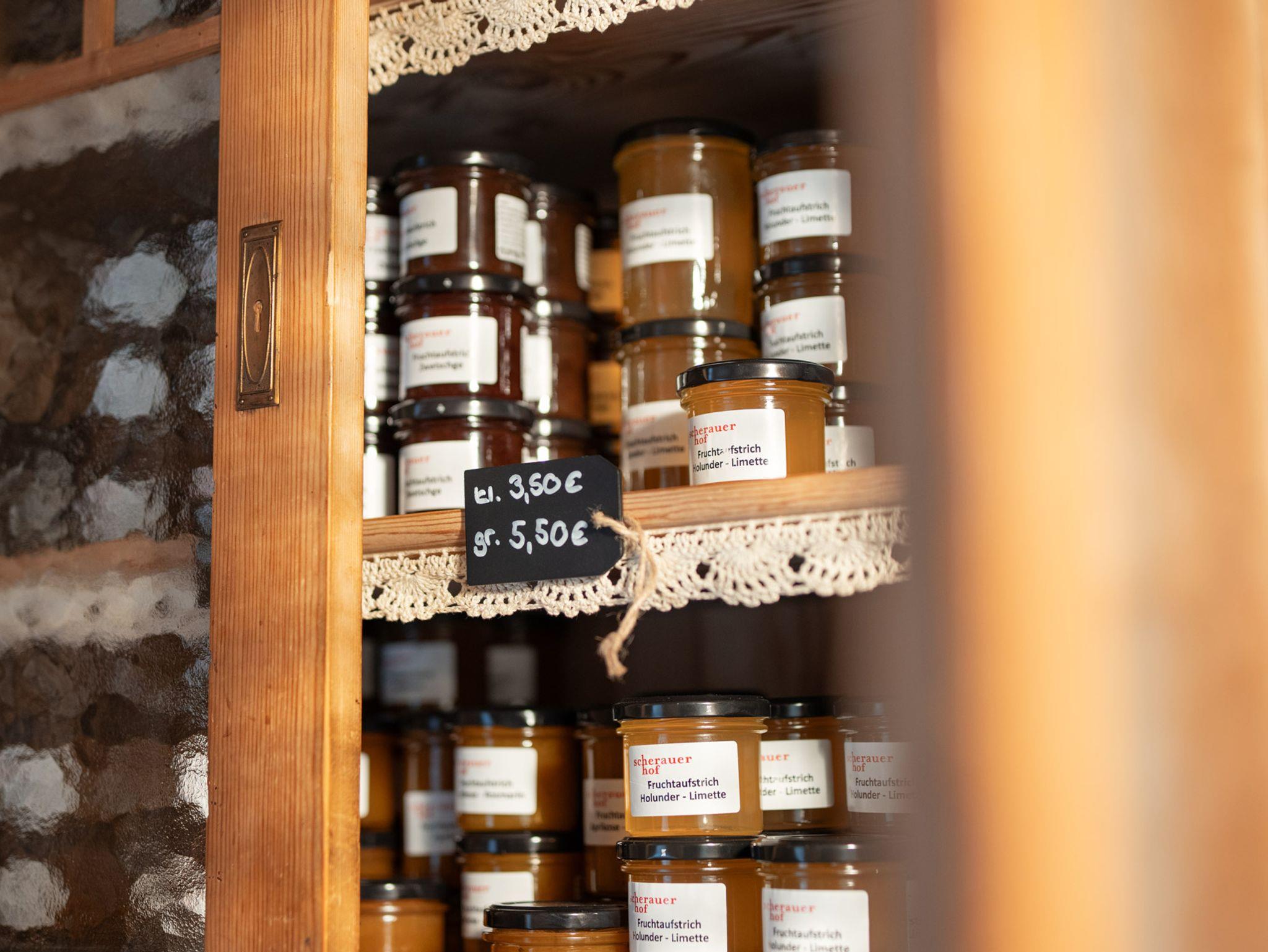 Für zusätzlichen Komfort erwartet Sie eine Gemeinschaftsküche mit Kaffee, Tee, Getränken und Snacks. Auf Wunsch servieren wir hausgemachtes Frühstück, regionale Brotzeiten und Spezialitäten aus unserer Hofküche. In unserem Hofladen finden Sie frische Produkte wie Brot, Aufstriche, Wurstspezialitäten, Käse, Honig und vieles mehr.