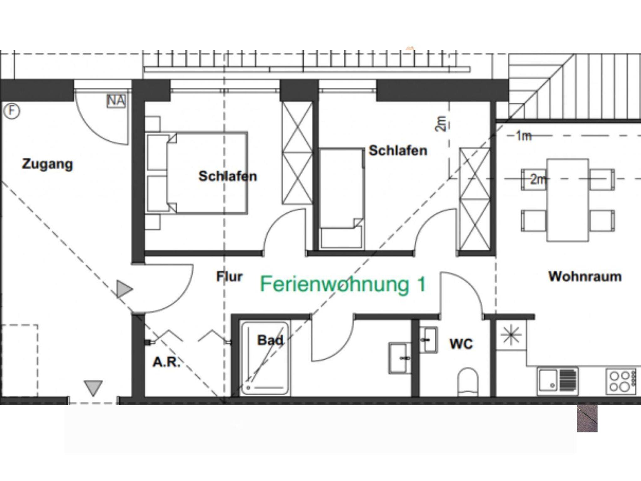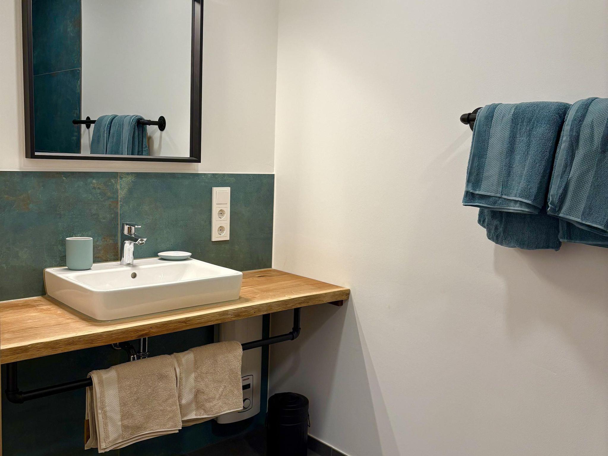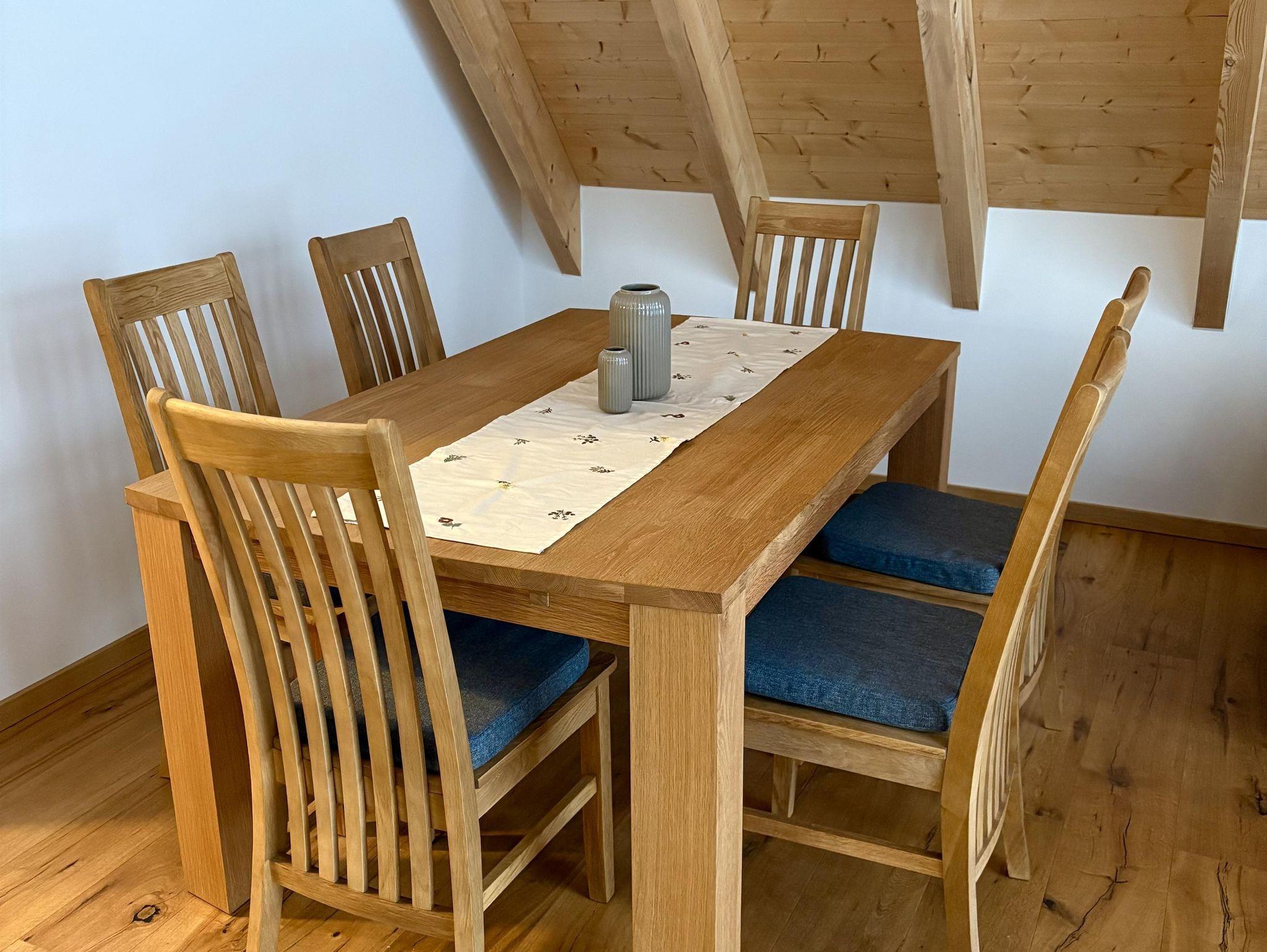Die großzügigen, lichtdurchfluteten Wohn- und Essbereiche sind das Herzstück unserer Wohnungen. Große Fenster holen die Natur direkt ins Haus und schenken euch zu jeder Jahreszeit ein helles, freundliches Ambiente. Der warme Holzboden und die angenehme Fußbodenheizung sorgen für ein behagliches Wohngefühl – barfußlaufen ausdrücklich erwünscht! Die Wohnung verfügt über zwei gemütliche Schlafzimmer, ein modernes Bad sowie ein separates WC. Im Wohnbereich findet ihr ein bequemes Ausziehsofa, auf dem bei Bedarf bis zu zwei weitere Gäste Platz finden. Die Wohnungen sind außerdem allergikerfreundlich gestaltet. Aus Rücksicht darauf, und auf alle Gäste sind Haustiere in unseren Ferienwohnungen nicht gestattet. Die offenen, modernen Küchen sind mit allem ausgestattet, was ihr für euren Aufenthalt braucht – von Töpfen und Pfannen bis hin zur Kaffeemaschine und Spülmaschine. So könnt ihr entspannt gemeinsam kochen, essen und genießen.