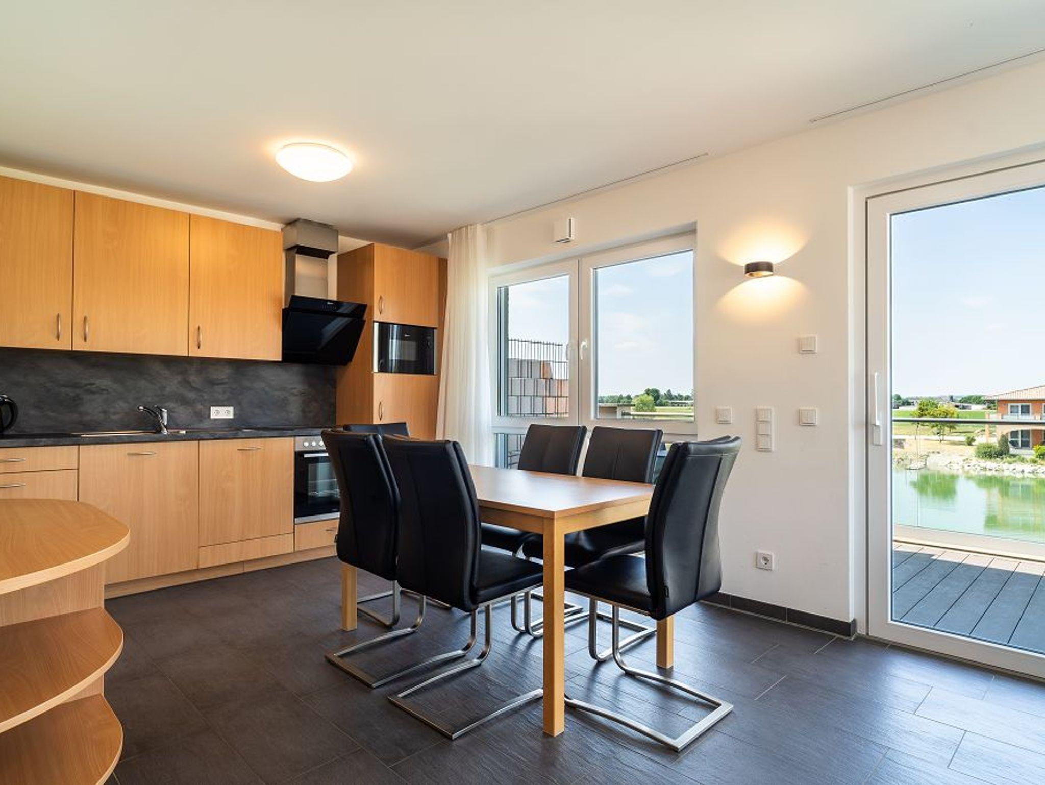 Die Ferienwohnung liegt direkt am Sonnensee im Obergeschoss, ist modern eingerichtet und mit 5 Sternen DTV klassifiziert. Die Wohnung hat eine moderne Einbauküche und sind ist einer Lüftungsanlage ausgestattet. Die Küche ist ausgestattet mit Kaffeemaschine, Wasserkocher, Eierkocher, Herd mit Dunstabzug, Backofen, Kühlschrank mit Gefrierfach, Einbaumikrowelle, Spülmaschine, Toaster und Staubsauger. Für unsere kleinen Gäste haben wir Gitterbettchen, Schemel im Badezimmer, Kindertoilettensitz, Hochstühle sowie Wickeltische mit Babybadewännchen und Windeleimer. Außerdem besitzt die Wohnung einen Safe und verfügt über einen Carportstellplatz direkt am Haus mit abschließbarer Fahrradgarage (Vorhängeschloss nötig) und eine E-Ladestation.