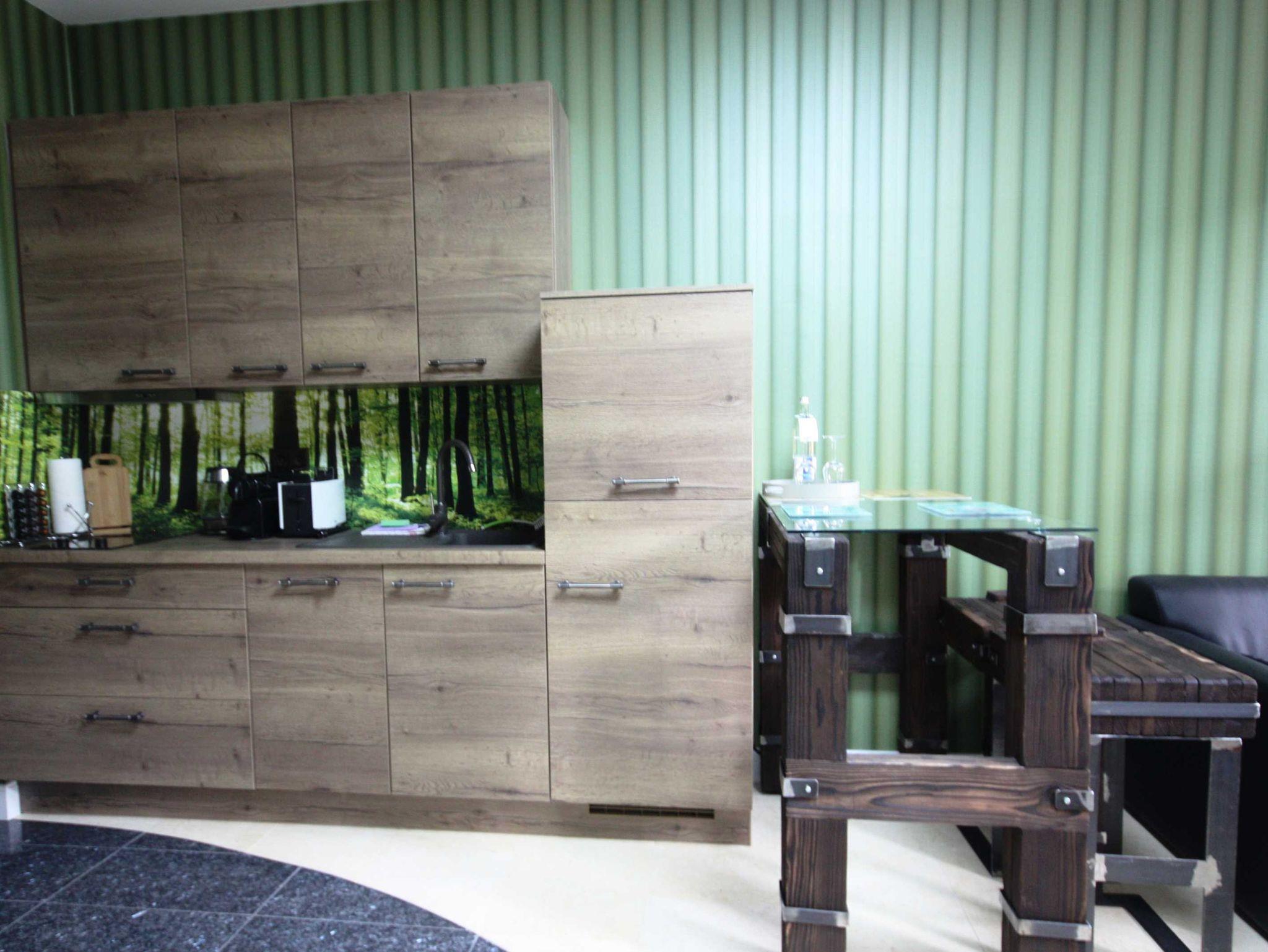 • Küchenzeile mit Spülmaschine, Kühlschrank mit Gefrierfach, Mikrowelle, Kaffeemaschine, 2-Platten-Cerankochfeld, Toaster, etc.