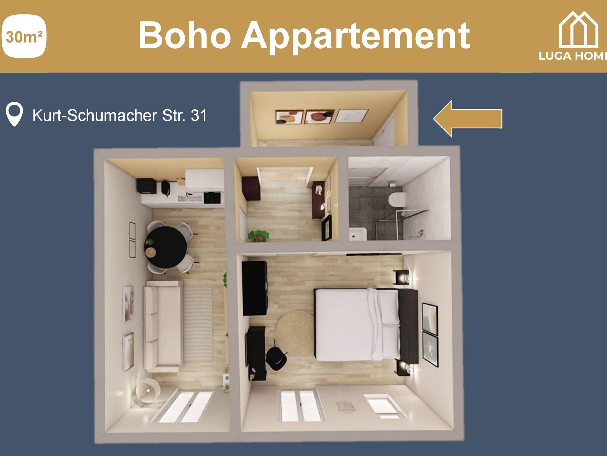 Luga Homes - Stadthaus, *Boho* 2-Zimmer-Appartement mit Wohnküche und Balkon