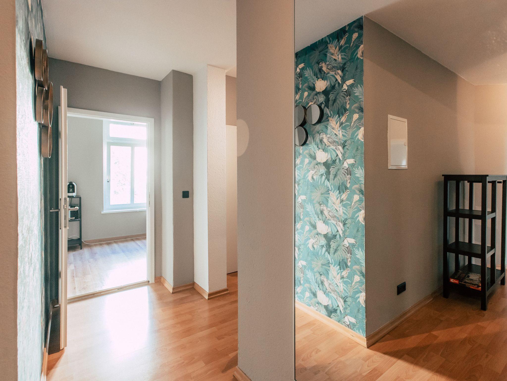 Die wunderschöne und großzügige Altbauwohnung erstrahlt, frisch renoviert, in neuem, prachtvollem Glanz! Der Eingangsbereich wird von einer fantastischen floralen Tapete und einer Prise Gold veredelt, während der riesige Kleiderschrank mit deckenhohem Spiegel um die Ecke, den Luxus eines begehbaren Kleiderschranks verwirklicht. Im stylishen Wohnbereich treffen samtiges Smaragdgrün, Gold und tropische Elemente geschmackvoll aufeinander und schaffen eine unvergleichliche Atmosphäre. Neben dem bequemen Doppelbett lädt das weiche Sofa zum Versinken und Netflixen ein. Das gemütliche Schlafzimmer zum grünen Hinterhof verspricht mit ruhiger Lage und dem himmlisch komfortablen Boxspringbett besten Schönheitsschlaf. Für eine Portion Wellness sorgt dann das helle Badezimmer mit Duschwanne. Die große Küche im modernen, industriellen Still ist rundum ausgestattet und bietet am großen Tisch gemütlichen Platz zum Schlemmen, Spielen und Zusammensein.